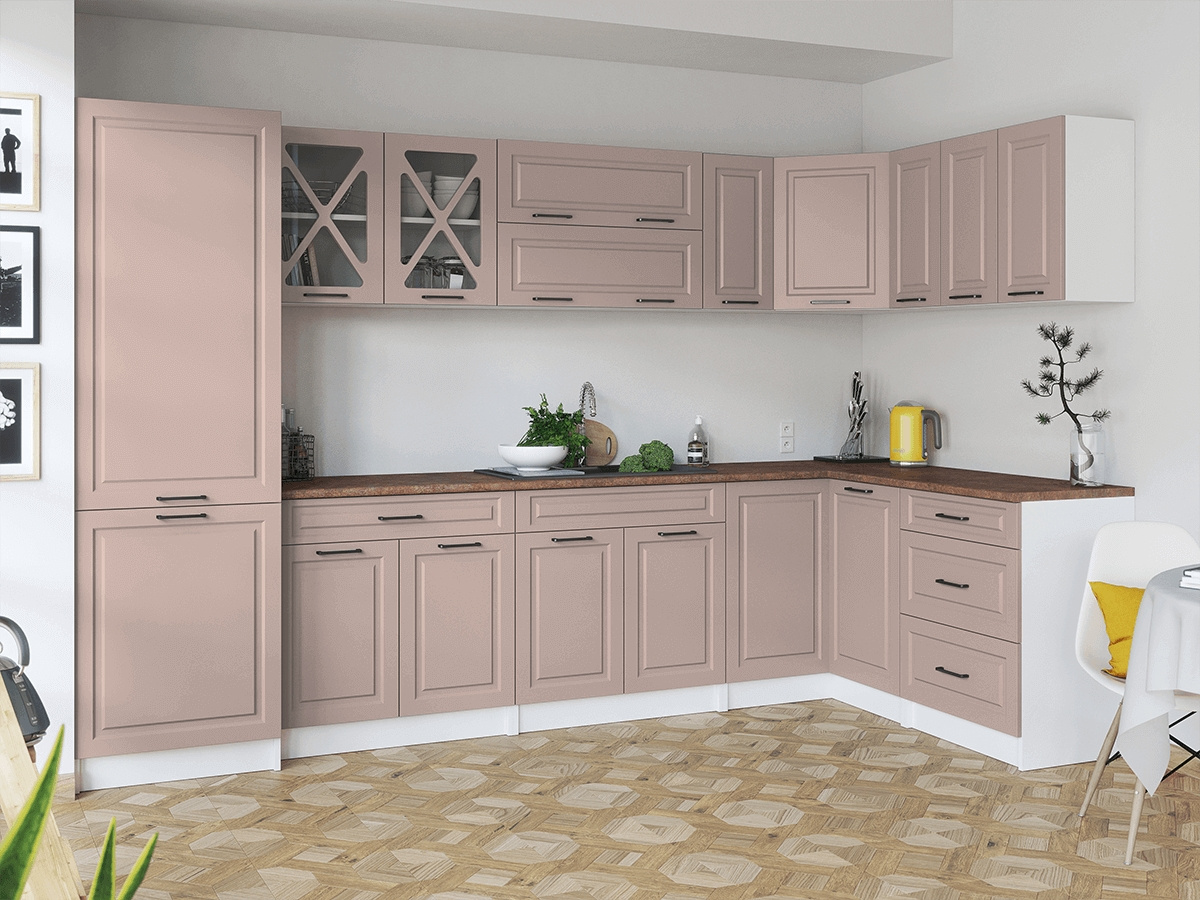 Rohová kuchyňská linka Simea růžová MAT
