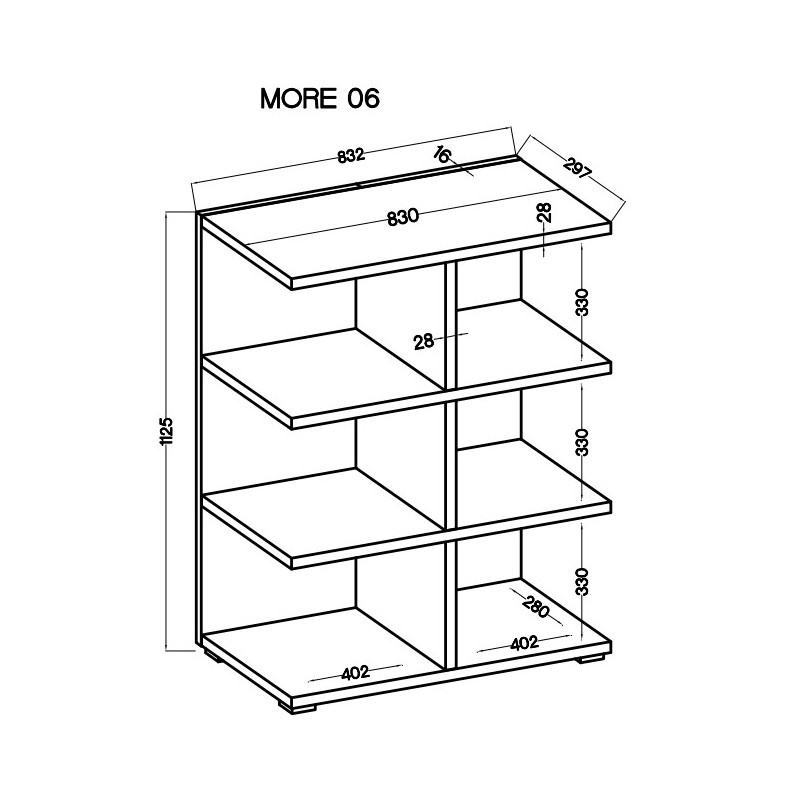 Policový regál Marek můžete využít mnoha způsoby. Může sloužit například jako dělící stěna k oddělení zóny v pokoji, jako knihovna, nebo regál na hračky či dekorace. Regál je vyrobený z lamina tloušťky 28 mm s hranami ABS 0,4 mm, které je odolné a snadné na údržbu. Regál je dodávaný v demontu. Součástí balení je montážní návod, včetně všech potřebných spojovacích prvků. Vlivem nastavení monitorů, nebo displejů telefonů, se zobrazení barev na fotografii může od skutečnosti lišit. Vyobrazené doplňky a dekorace nejsou v ceně.