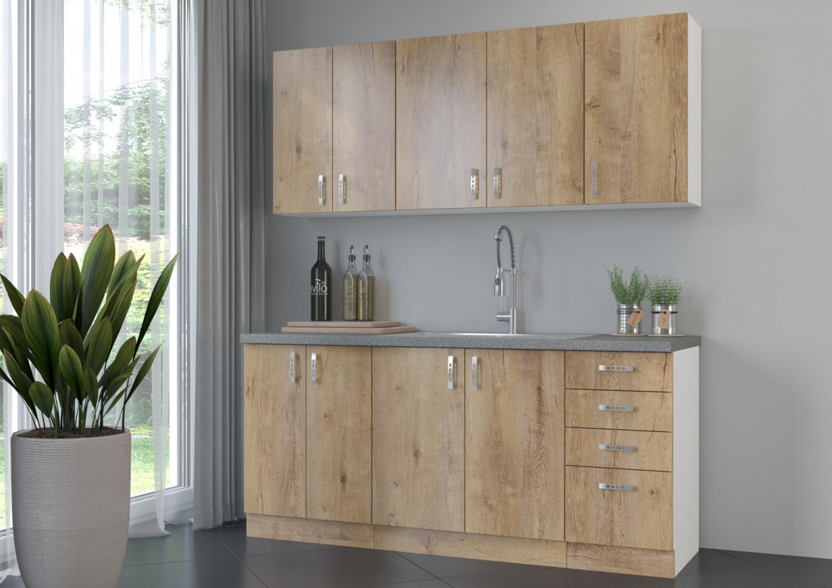 Kuchyňská skříňka Sally 60OK je vyrobena z lamina tloušťky 16 mm bílé barvy a s dvířky v odstínu dub lefkas. Vyberte si z naší nabídky skříněk a vytvořte si kuchyň dle vlastích představ. Může být rohová, rovná, krátká i dlouhá. Fantazii se meze nekladou. V doplňkových fotografiích najdete pro inspiraci fotky kuchyní, které jsou z těchto skříněk sestaveny. Skříňka je dodávaná v demontu. Součástí je montážní plánek včetně všech potřebných spojovacích materiálů.
