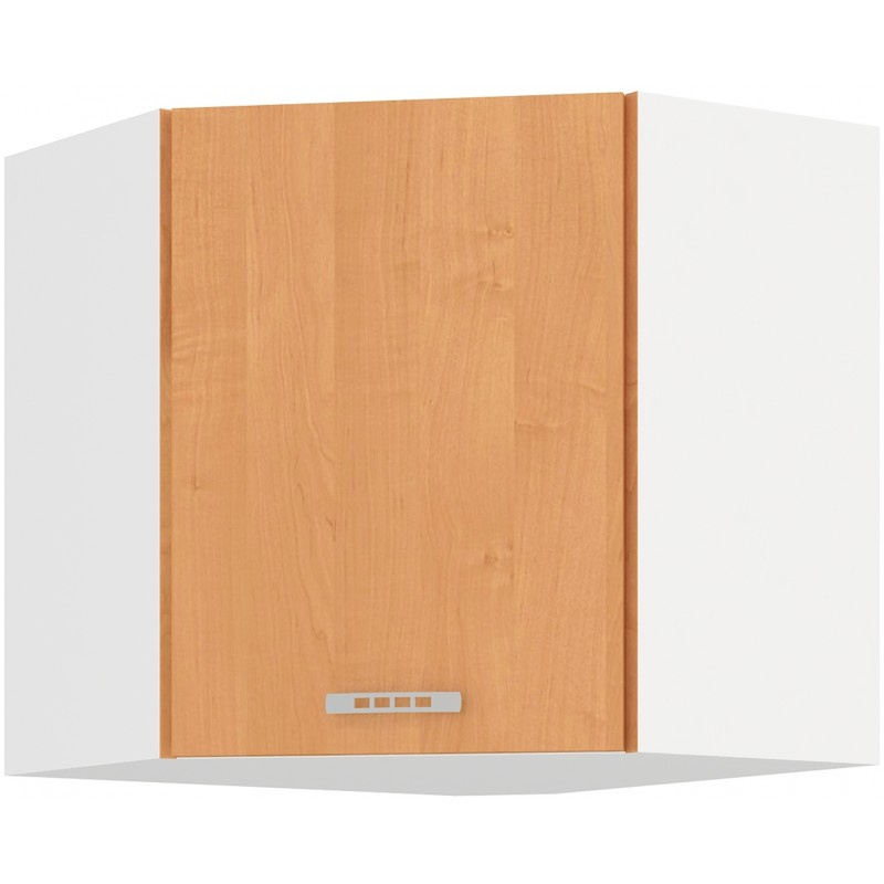Vrchní rohová kuchyňská skříňka Sally 58x58GN je vyrobena z lamina tloušťky 16 mm bílé barvy a s dvířky v odstínu olše. Vyberte si z naší nabídky skříněk a vytvořte si kuchyň dle vlastích představ. Může být rohová, rovná, krátká i dlouhá. Fantazii se meze nekladou. V doplňkových fotografiích najdete pro inspiraci fotky kuchyní, které jsou z těchto skříněk sestaveny. Skříňka je dodávaná v demontu. Součástí je montážní plánek včetně všech potřebných spojovacích materiálů.