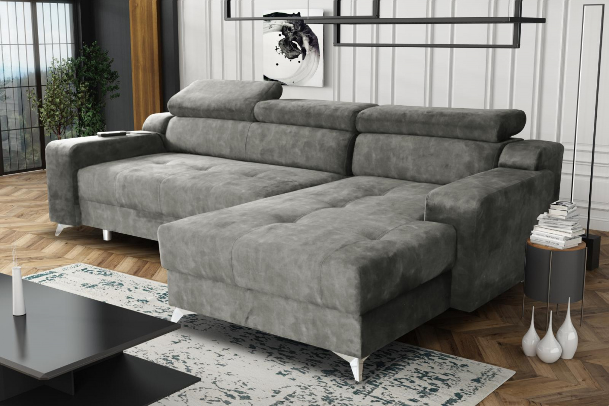 Sedací souprava Darina osloví každého, kdo preferuje moderní vzhled a zároveň pohodlí a praktičnost. Je potažena kvalitní potahovou látkou s elegantním prošitím na sedací části. Naprostou novinkou u této sedací soupravy je elektrický rozklad. Po stisknutí ovládacího tlačítka se vysune sedací část do polohy pro spaní. Má také velmi praktický úložný prostor, který můžete využít např., na lůžkoviny. Pohodlí při sezení zajišťuje výplň sedáků, kterou tvoří kombinace pružin faliste s kvalitní PUR pěnou. Komfort a pohodlí při odpočinku zvyšuje polohovací opěrka hlavy. Sedací soupravu nabízíme v levém i pravém provedení. Vyobrazené dekorace a doplňky nejsou v ceně sedací soupravy. Zobrazení barev na fotografii se může od skutečnosti lišit. Fotografie sedací soupravy v rozkladu jsou pouze ilustrační, správný odstín je zobrazen na úvodní fotografii.