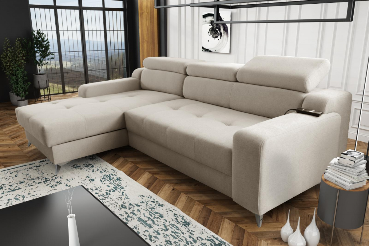 Sedací souprava Darina osloví každého, kdo preferuje moderní vzhled a zároveň pohodlí a praktičnost. Je potažena kvalitní potahovou látkou s elegantním prošitím na sedací části. Naprostou novinkou u této sedací soupravy je elektrický rozklad. Po stisknutí ovládacího tlačítka se vysune sedací část do polohy pro spaní. Má také velmi praktický úložný prostor, který můžete využít např., na lůžkoviny. Pohodlí při sezení zajišťuje výplň sedáků, kterou tvoří kombinace pružin faliste s kvalitní PUR pěnou. Komfort a pohodlí při odpočinku zvyšuje polohovací opěrka hlavy. Sedací soupravu nabízíme v levém i pravém provedení. Vyobrazené dekorace a doplňky nejsou v ceně sedací soupravy. Zobrazení barev na fotografii se může od skutečnosti lišit. Fotografie sedací soupravy v rozkladu jsou pouze ilustrační, správný odstín je zobrazen na úvodní fotografii.