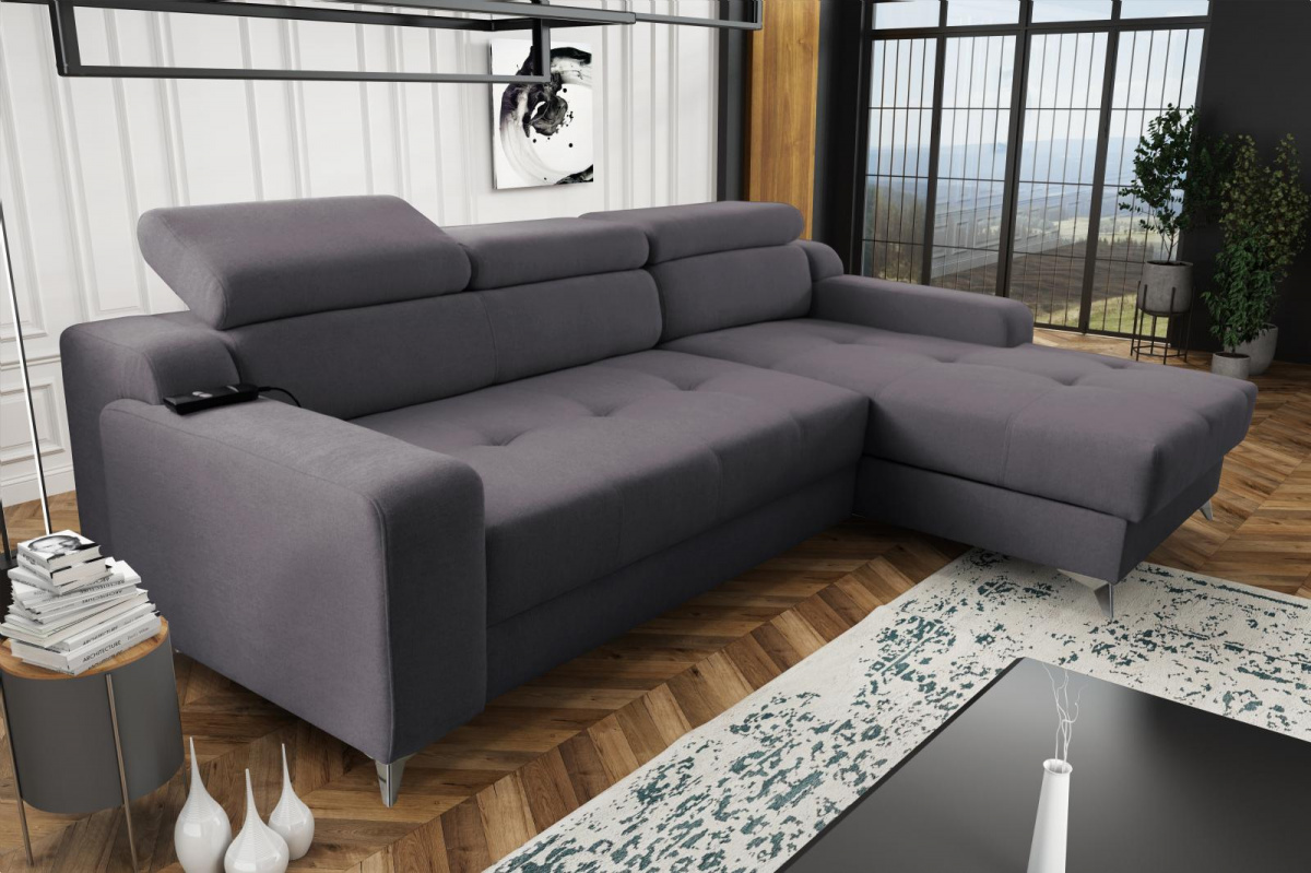 Sedací souprava Darina osloví každého, kdo preferuje moderní vzhled a zároveň pohodlí a praktičnost. Je potažena kvalitní potahovou látkou s elegantním prošitím na sedací části. Naprostou novinkou u této sedací soupravy je elektrický rozklad. Po stisknutí ovládacího tlačítka se vysune sedací část do polohy pro spaní. Má také velmi praktický úložný prostor, který můžete využít např., na lůžkoviny. Pohodlí při sezení zajišťuje výplň sedáků, kterou tvoří kombinace pružin faliste s kvalitní PUR pěnou. Komfort a pohodlí při odpočinku zvyšuje polohovací opěrka hlavy. Sedací soupravu nabízíme v levém i pravém provedení. Vyobrazené dekorace a doplňky nejsou v ceně sedací soupravy. Zobrazení barev na fotografii se může od skutečnosti lišit. Fotografie sedací soupravy v rozkladu jsou pouze ilustrační, správný odstín je zobrazen na úvodní fotografii.