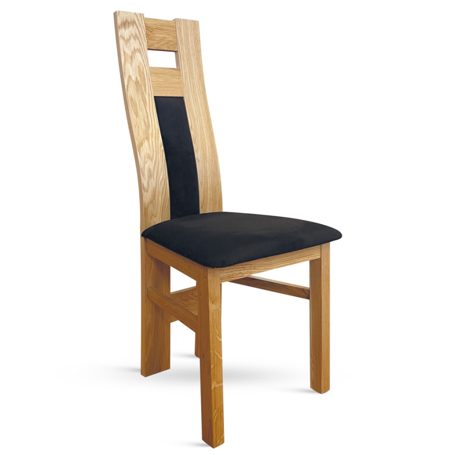 Moderní jídelní židle, dub masiv. Čalouněná opěrka. DOPRODEJ - u provedení s látkou velur (samet) šedý, či černý je zvýhodněná cena!