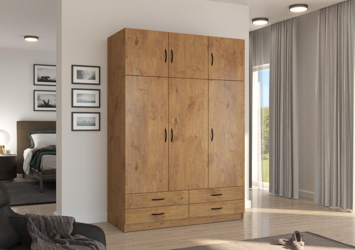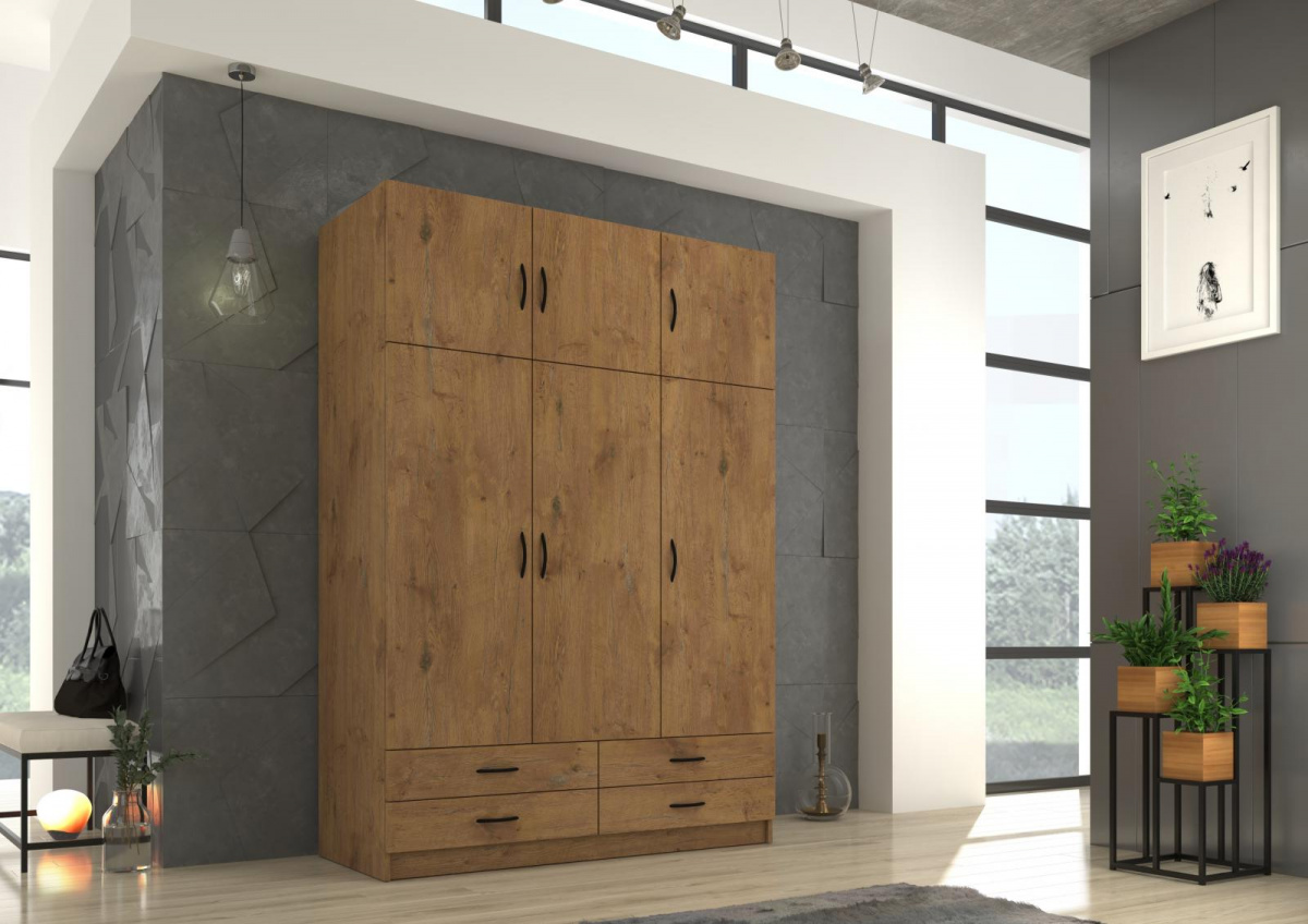 Šatní skříň se zásuvkami Stix je vyrobena z kvalitního lamina tl.16 mm, které je odolné a snadné na údržbu. Vnitřní uspořádání skříně je praktické a poskytuje dostatek úložného prostoru. Své uplatnění najde v ložnici, předsíni i v dětském pokoji. Skříň je dodávaná v demontu. Součástí balení je montážní plánek včetně všech potřebných spojovacích materiálů. Vlivem nastavení monitorů, nebo displejů telefonů, se zobrazení barev na fotografii může od skutečnosti lišit.