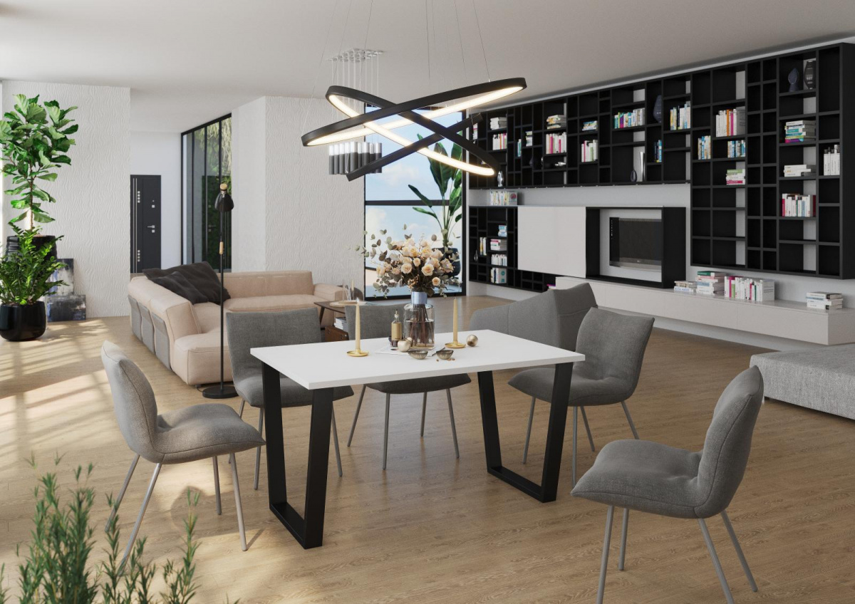 Jídelní stůl Cyril je vyrobený v nadčasovém stylu, který se hodí do každé moderní domácnosti. Deska stolu je z lamina tl.28 mm, nohy jsou kovové, matné v černé barvě. Stůl se skvěle hodí nejen do jídelny, ale i do kuchyně nebo do jídelního koutu v obývacím pokoji. Stůl je dodávaný v demontu. Součástí balení je montážní návod včetně všech spojovacích prvků. Vlivem nastavení monitorů, nebo displejů telefonů, se zobrazení barev na fotografii může od skutečnosti lišit. Cena je uvedena za stůl. Vyobrazené doplňky a dekorace nejsou v ceně.