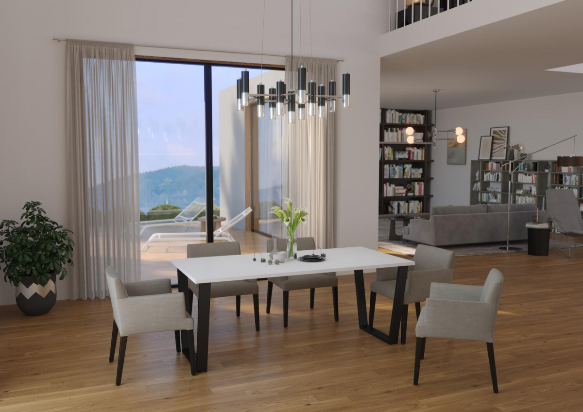 Jídelní stůl Cyril je vyrobený v nadčasovém stylu, který se hodí do každé moderní domácnosti. Deska stolu je z lamina tl.28 mm, nohy jsou kovové, matné v černé barvě. Stůl se skvěle hodí nejen do jídelny, ale i do kuchyně nebo do jídelního koutu v obývacím pokoji. Stůl je dodávaný v demontu. Součástí balení je montážní návod včetně všech spojovacích prvků. Vlivem nastavení monitorů, nebo displejů telefonů, se zobrazení barev na fotografii může od skutečnosti lišit. Cena je uvedena za stůl. Vyobrazené doplňky a dekorace nejsou v ceně.