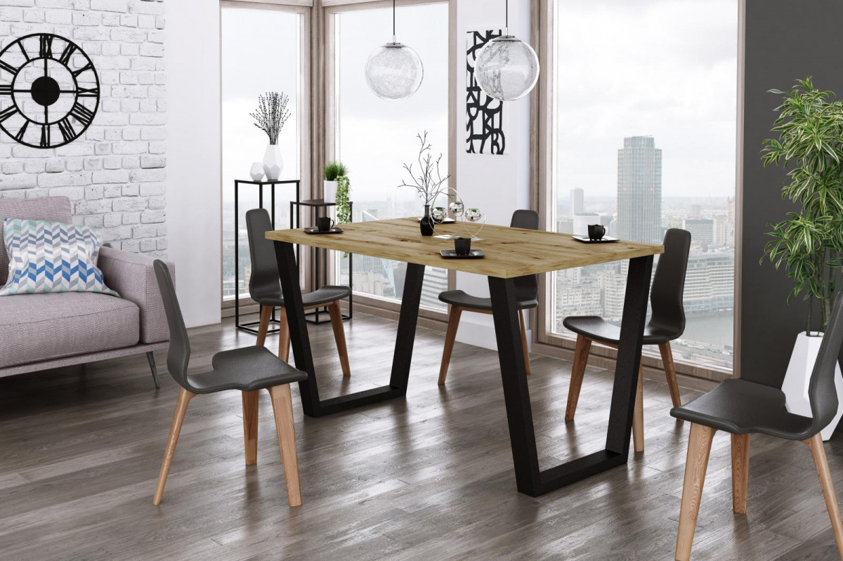 Jídelní stůl Cyril je vyrobený v nadčasovém stylu, který se hodí do každé moderní domácnosti. Deska stolu je z lamina tl.28 mm, nohy jsou kovové, matné v černé barvě. Stůl se skvěle hodí nejen do jídelny, ale i do kuchyně nebo do jídelního koutu v obývacím pokoji. Stůl je dodávaný v demontu. Součástí balení je montážní návod včetně všech spojovacích prvků. Vlivem nastavení monitorů, nebo displejů telefonů, se zobrazení barev na fotografii může od skutečnosti lišit. Cena je uvedena za stůl. Vyobrazené doplňky a dekorace nejsou v ceně.
