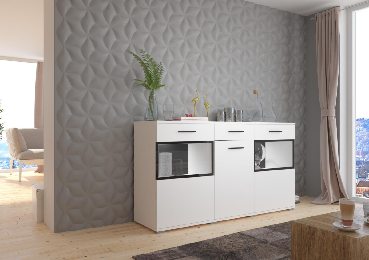 Komoda Bart je nejen skvělým doplňkem k bytové stěně Bart. Stejně výborně poslouží jako samostatný kus nábytku. Komoda má univerzální využití a nabízí dostatek úložného prostoru. Komoda je vyrobena z odolného lamina tloušťky 15mm. Komoda je dodávaná v demontu. Součástí balení je schematický montážní návod, včetně všech potřebných spojovacích prvků. Vyobrazené doplňky a dekorace nejsou v ceně. Ke komodě je možno zakoupit LED osvětlení.
