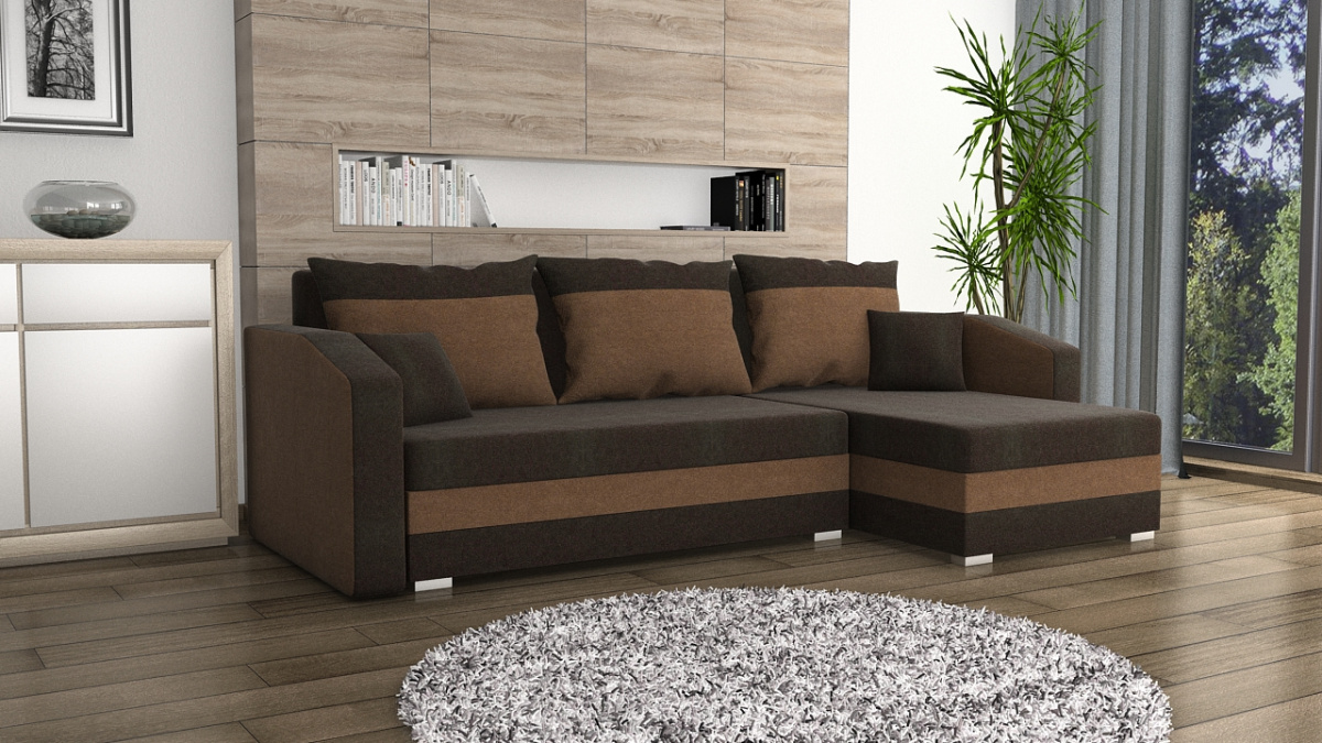Sedací souprava Fabian je příjemným spojením elegance, funkčnosti a příznivé ceny. Sedací souprava je vyrobená v jednoduchém nadčasovém designu. Díky svým rozměrům je vhodná i do menších pokojů. Je velmi pohodlná a zároveň praktická. Velkou předností sedací soupravy, je univerzální použití. Tzn., že si ji můžete podle potřeby sestavit jako levou nebo pravou, což je výhoda při zařizování obývacího pokoje. Nemusíte přemýšlet, do jakého rohu sedací soupravu postavíte. Jednoduše si ji podle potřeby přizpůsobíte. Výplň sedáku tvoří kvalitní PUR pěna. Praktickou stránku sedací soupravy zajišťuje možnost rozložení k občasnému přespání návštěvy a samozřejmostí je i úložný prostor. Sedací soupravu nabízíme v několika barevných provedeních. Vyobrazené doplňky a dekorace nejsou v ceně. Zobrazení barev na fotografii se může od skutečnosti lišit. Výška nožek je 2,8 cm.