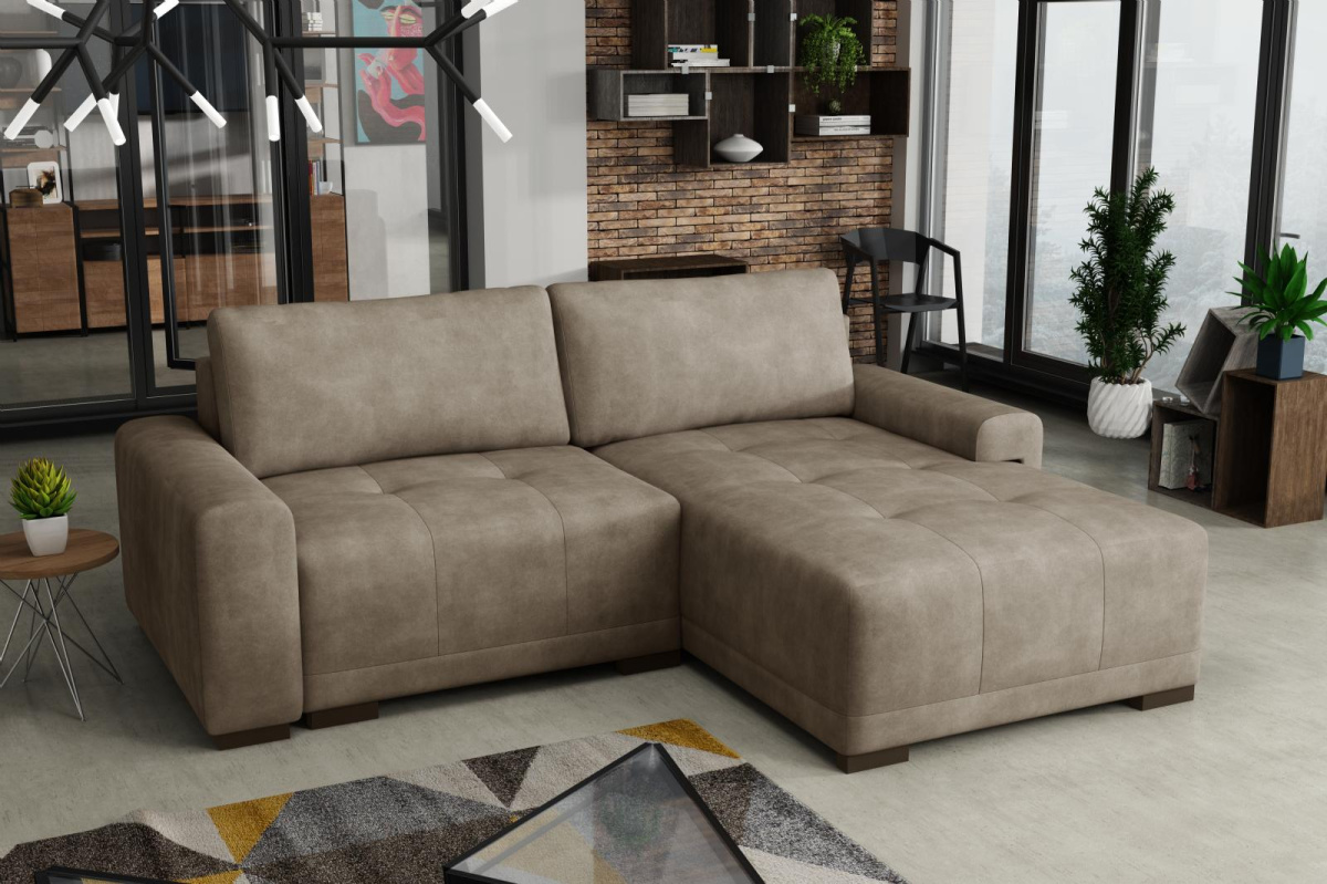 Manon je moderní rohová sedací souprava s nadčasovým designem. Její předností je pohodlí, praktičnost a univerzální použití. Můžete si ji podle potřeby sestavit jako levou nebo pravou, což je výhoda při zařizování obývacího pokoje. Nemusíte přemýšlet do jakého rohu postavíte sedací soupravu, jednoduše ji podle potřeby přizpůsobíte. Pohodlí při sezení zajišťuje kombinace pružin faliste s kvalitní PUR pěnou a velké opěrné polštáře, které jsou odnímatelné. Praktickou stránkou sedací soupravy je úložný prostor a možnost rozložení k občasnému přespání Vaší návštěvy. Sedací souprava je potažena jednobarevnou látkou a v nabídce najdete více barevných variant. V ceně sedací soupravy jsou 2 velké opěrné polštáře. Ostatní vyobrazené dekorace nejsou v ceně. Zobrazení barev produktu na fotografii se může nepatrně lišit od skutečnosti. Správná barva potahové látky je zobrazena na první fotografii. Fotografie sedací soupravy v rozkladu jsou pouze ilustrační.