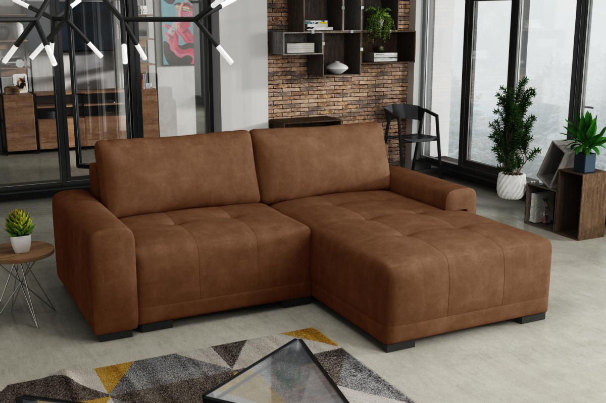 Manon je moderní rohová sedací souprava s nadčasovým designem. Její předností je pohodlí, praktičnost a univerzální použití. Můžete si ji podle potřeby sestavit jako levou nebo pravou, což je výhoda při zařizování obývacího pokoje. Nemusíte přemýšlet do jakého rohu postavíte sedací soupravu, jednoduše ji podle potřeby přizpůsobíte. Pohodlí při sezení zajišťuje kombinace pružin faliste s kvalitní PUR pěnou a velké opěrné polštáře, které jsou odnímatelné. Praktickou stránkou sedací soupravy je úložný prostor a možnost rozložení k občasnému přespání Vaší návštěvy. Sedací souprava je potažena jednobarevnou látkou a v nabídce najdete více barevných variant. V ceně sedací soupravy jsou 2 velké opěrné polštáře. Ostatní vyobrazené dekorace nejsou v ceně. Zobrazení barev produktu na fotografii se může nepatrně lišit od skutečnosti. Správná barva potahové látky je zobrazena na první fotografii. Fotografie sedací soupravy v rozkladu jsou pouze ilustrační.