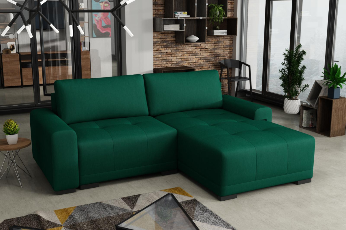 Manon je moderní rohová sedací souprava s nadčasovým designem. Její předností je pohodlí, praktičnost a univerzální použití. Můžete si ji podle potřeby sestavit jako levou nebo pravou, což je výhoda při zařizování obývacího pokoje. Nemusíte přemýšlet do jakého rohu postavíte sedací soupravu, jednoduše ji podle potřeby přizpůsobíte. Pohodlí při sezení zajišťuje kombinace pružin faliste s kvalitní PUR pěnou a velké opěrné polštáře, které jsou odnímatelné. Praktickou stránkou sedací soupravy je úložný prostor a možnost rozložení k občasnému přespání Vaší návštěvy. Sedací souprava je potažena jednobarevnou látkou a v nabídce najdete více barevných variant. V ceně sedací soupravy jsou 2 velké opěrné polštáře. Ostatní vyobrazené dekorace nejsou v ceně. Zobrazení barev produktu na fotografii se může nepatrně lišit od skutečnosti. Správná barva potahové látky je zobrazena na první fotografii. Fotografie sedací soupravy v rozkladu jsou pouze ilustrační.