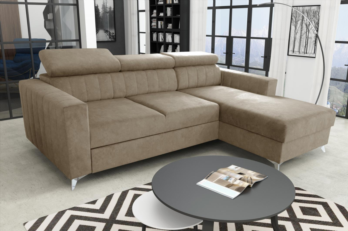 Sedací souprava Mildred osloví každého, kdo preferuje moderní vzhled a zároveň pohodlí a praktičnost. Je potažena kvalitní potahovou látkou s kontrastním prošitím. Sedací souprava je velmi pohodlná a dostatečně velká na posezení s přáteli, nebo rodinou. Pro případ, že se návštěva zdrží přes noc, je sedací souprava vybavena rozkladem, díky kterému sedací soupravu jednoduše přeměníte v prostorné lůžko. Sedací souprava má praktický úložný prostor, který můžete využít např., na lůžkoviny. Pohodlí při sezení zajišťuje výplň sedáků, kterou tvoří kombinace pružin faliste s kvalitní PUR pěnou. Komfort a pohodlí při odpočinku zvyšuje polohovací opěrka hlavy. Sedací soupravu nabízíme v levém i pravém provedení.