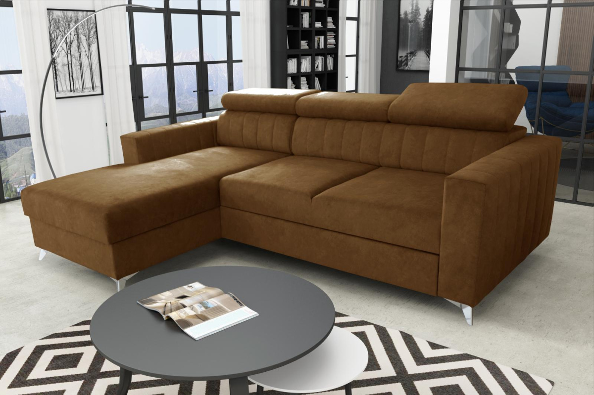 Sedací souprava Mildred osloví každého, kdo preferuje moderní vzhled a zároveň pohodlí a praktičnost. Je potažena kvalitní potahovou látkou s kontrastním prošitím. Sedací souprava je velmi pohodlná a dostatečně velká na posezení s přáteli, nebo rodinou. Pro případ, že se návštěva zdrží přes noc, je sedací souprava vybavena rozkladem, díky kterému sedací soupravu jednoduše přeměníte v prostorné lůžko. Sedací souprava má praktický úložný prostor, který můžete využít např., na lůžkoviny. Pohodlí při sezení zajišťuje výplň sedáků, kterou tvoří kombinace pružin faliste s kvalitní PUR pěnou. Komfort a pohodlí při odpočinku zvyšuje polohovací opěrka hlavy. Sedací soupravu nabízíme v levém i pravém provedení.