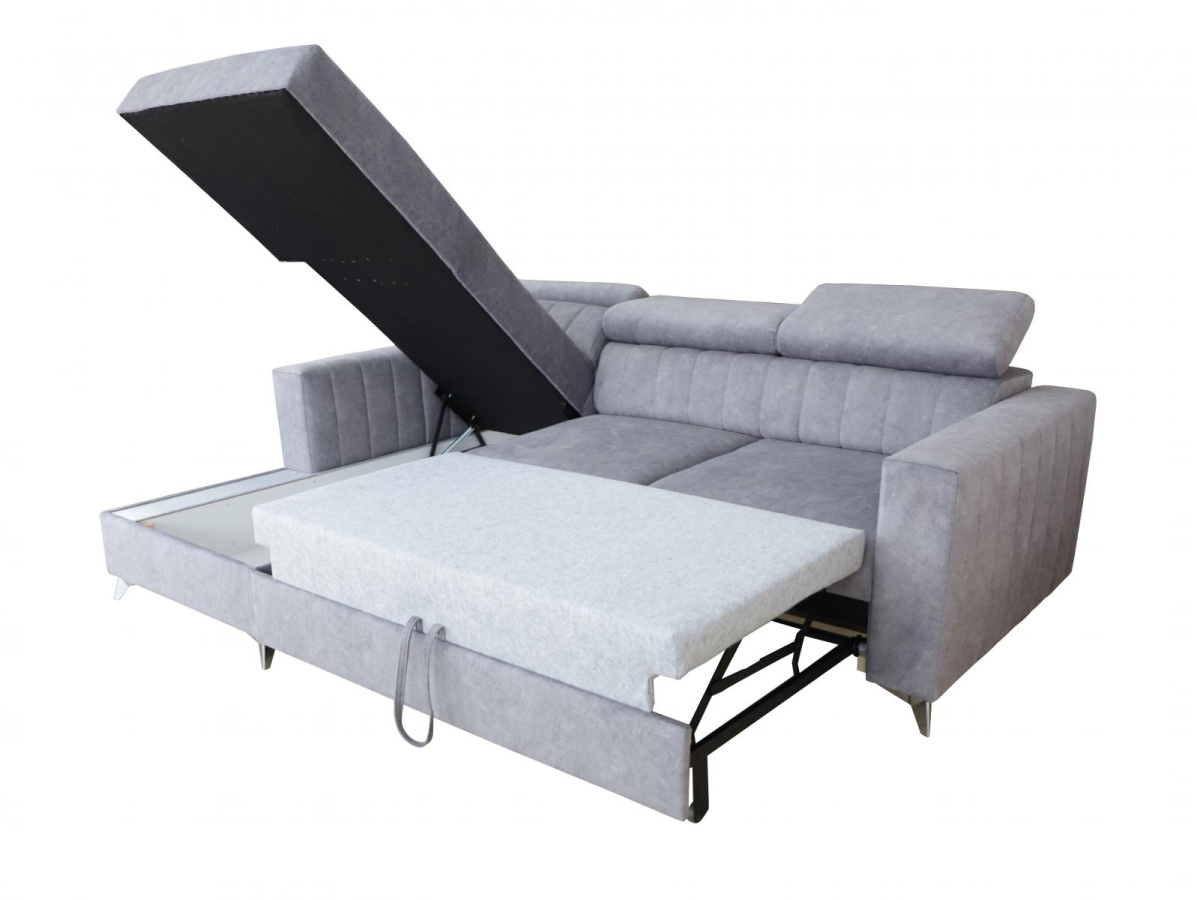 Sedací souprava Mildred osloví každého, kdo preferuje moderní vzhled a zároveň pohodlí a praktičnost. Je potažena kvalitní potahovou látkou s kontrastním prošitím. Sedací souprava je velmi pohodlná a dostatečně velká na posezení s přáteli, nebo rodinou. Pro případ, že se návštěva zdrží přes noc, je sedací souprava vybavena rozkladem, díky kterému sedací soupravu jednoduše přeměníte v prostorné lůžko. Sedací souprava má praktický úložný prostor, který můžete využít např., na lůžkoviny. Pohodlí při sezení zajišťuje výplň sedáků, kterou tvoří kombinace pružin faliste s kvalitní PUR pěnou. Komfort a pohodlí při odpočinku zvyšuje polohovací opěrka hlavy. Sedací soupravu nabízíme v levém i pravém provedení.