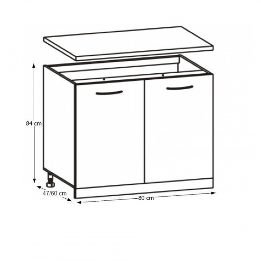 dolní skříňka Cyra D - 80, dvoudveřová, materiál : DTD laminovaná, provedení dvířek je dub sonoma a korpus je bílý, rozměry (ŠxHxV): 80x47/60x84 cm. Dodáváno včetně pracovní desky a v demontu. Dřezová skríňka je dodávaná bez pracovní desky. Možnost dokoupení univerzálního L/P dřezu v ceně 1.990 Kč. Tloušťka materiálu: 16 mm
