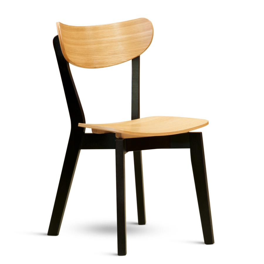 Moderní a elegantní jídelní židle, Kostra buk masiv, lakovaná černou. Sedák+opěrka je překližka v odstínu dub přírodní.