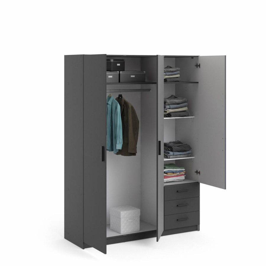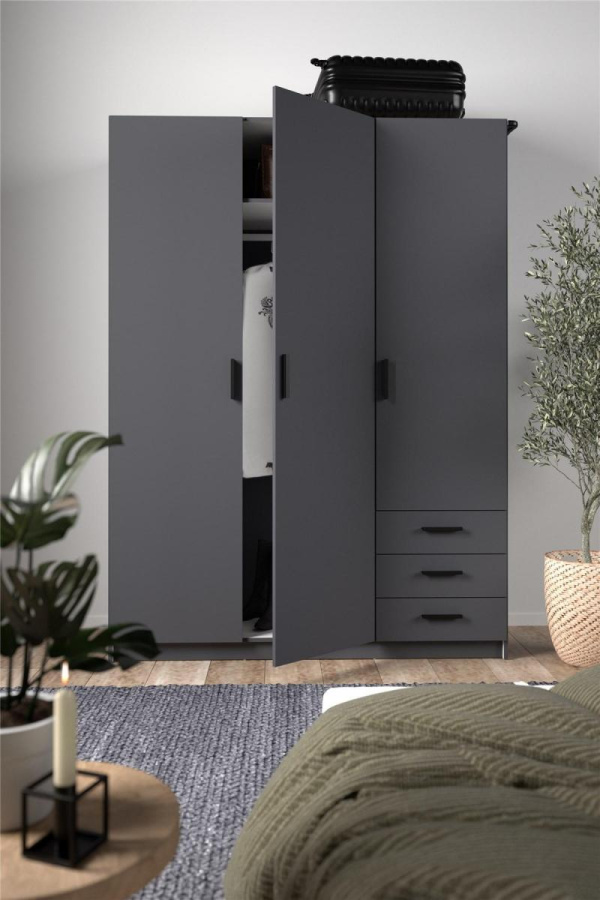 Šatní skříň Spike je vyrobená z lamina, má kvalitní zpracování, je vyráběná v souladu s ohledy na životní prostředí a navíc je praktická a funkční. Nabízí dostatek úložného prostoru a univerzální využití. Výborně se hodí např. do ložnice, do dětského i studentského pokoje, ale i do pracovny či předsíně. Skříň je vyrobená v jednoduchém a nadčasovém skandinávském stylu. Má rovné a čisté linie, které vytvoří útulný, pohodový a příjemný interiér. Skříň je také vybavena praktickými zásuvkami, které můžete využít např.na spodní prádlo. Je dodávaná v demontu. Součástí balení je montážní návod včetně všech spojovacích prvků. Vyobrazené doplňky a dekorace nejsou v ceně.