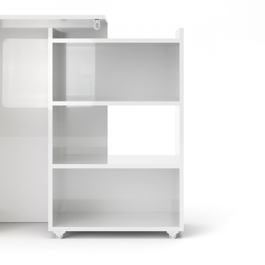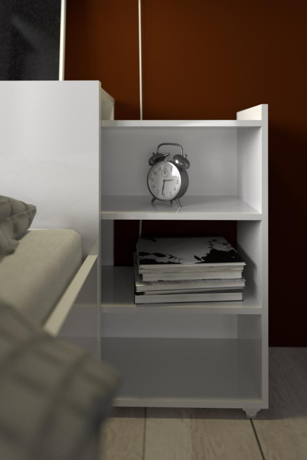 Čelo postele s posuvnými regály síře 140 cm, je skvělým doplňkem k posteli Simplicity 140x200 cm. Se svým skrytým úložným prostorem na knihy, časopisy a všechny další věci, které byste rádi měli po ruce, se stane velmi praktickým a využívaným kusem nábytku. Když jsou regály vysunuté a nahradí Vám noční stolek. Jakmile je zasunete, bude Vaše ložnice stále působit uspořádaně. Pro snadné posunování jsou regály vybaveny kolečky. Čelo je dodáváno v demontu a součástí balení je montážní plánek včetně všech potřebných spojovacích prvků. Vyobrazené dekorace nejsou v ceně.