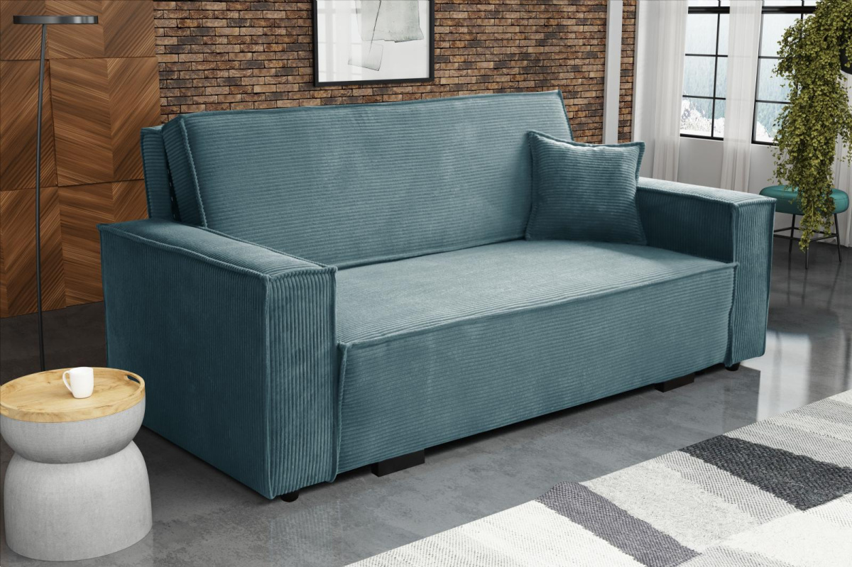 Pohovka je vhodná do dětského, studentského, nebo hostinského pokoje. Jednoduchým rozložením pomocí automatu, získáte lůžko k příležitostnému přespání Vaší návštěvy, nebo kamaráda Vašich dětí. Výplň sedáku tvoří vlnité pružiny v kombinaci s PUR pěnou. Pohovka je potažena kvalitní látkou s výběrem několika trendy odstínů. Pohovka disponuje i nepostradatelným úložným prostorem, který využijete např. na deku a polštář. Ostatní vyobrazené doplňky a dekorace nejsou v ceně. Zobrazení barev na fotografii se může od skutečnosti lišit.