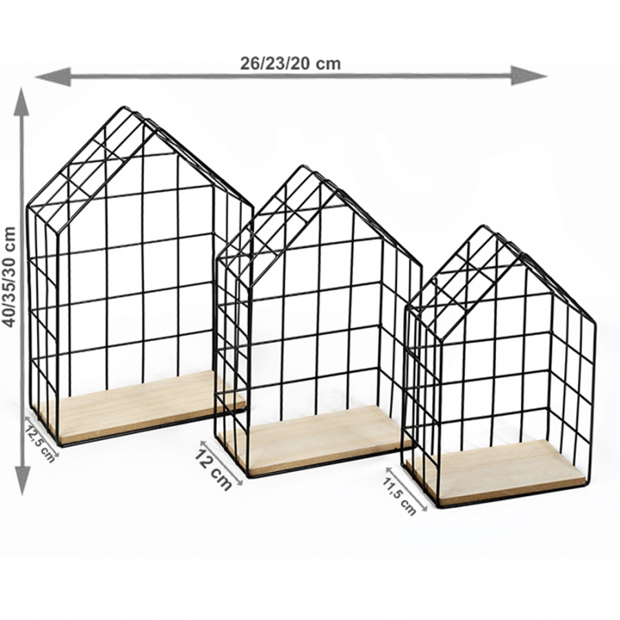 Set 3 moderních poliček AZURI Materiál: dřevo / kov Provedení: přírodní / černá Rozměry velké police (ŠxHxV): 26x12,5x40 cm Rozměry střední police (ŠxHxV): 23x12x35 cm Rozměry malé police (ŠxHxV): 20x11,5x30 cm Dodávané v demontu.