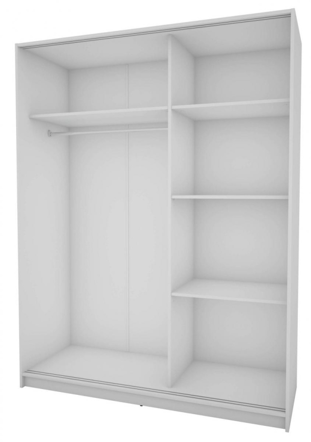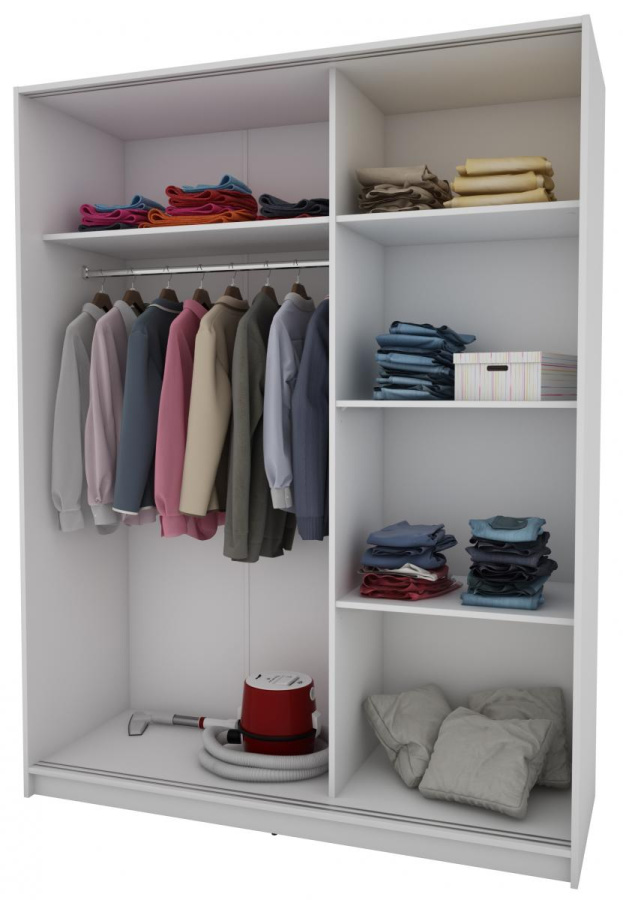 Skříň je vyrobena z kvalitního lamina. Díky svému vnitřnímu uspořádání nabízí dostatek úložného prostoru, posuvné dveře šetří prostor a zrcadlo ho opticky zvětšuje. Skříň je vhodná do ložnice, dětského nebo studentského pokoje, do předsíně i kanceláře. Vnitřní uspořádání skříně je vyobrazeno na fotografii. Skříň je dodávána v demontu. Součástí jsou i skleněná zrcadla, která jsou nalepena na dveřích skříně a také montážní plánek včetně všech potřebných spojovacích materiálů. Vyobrazené dekorace nejsou v ceně.