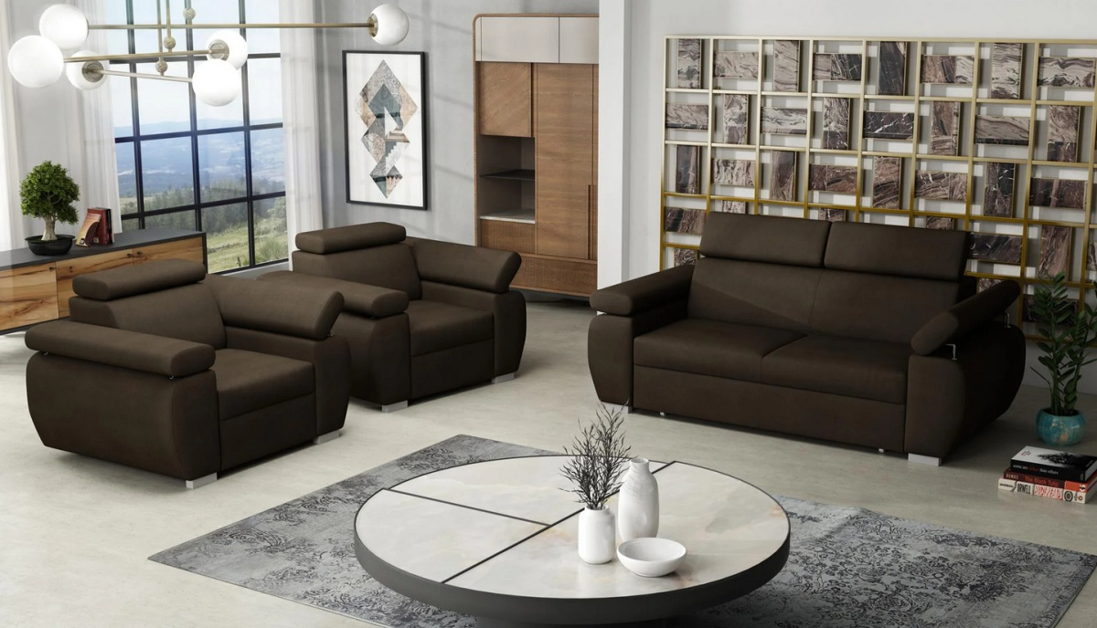 Sedací souprava Bodie je vyrobena v jednoduchém elegantním designu, který se hodí do všech interiérů. Sedací souprava je potažena kvalitní látkou Paros, která je sametově hebká a nežmolkovatí. Je odolná proti UV záření, takže udržuje stálost barev i při denním světle. Sedací soupravu nabízíme v několika odstínech této látky. Výplň sedáků tvoří kombinace vlnitých pružin s kvalitní HR pěnou. Pro pohodlí při sezení a odpočinku, je sedací souprava vybavena polohovacími opěrkami hlavy. Cena je uvedena za sestavu 3+1+1. Vyobrazené doplňky a dekorace nejsou v ceně. Zobrazení barev na fotografii se může od skutečnosti lišit.