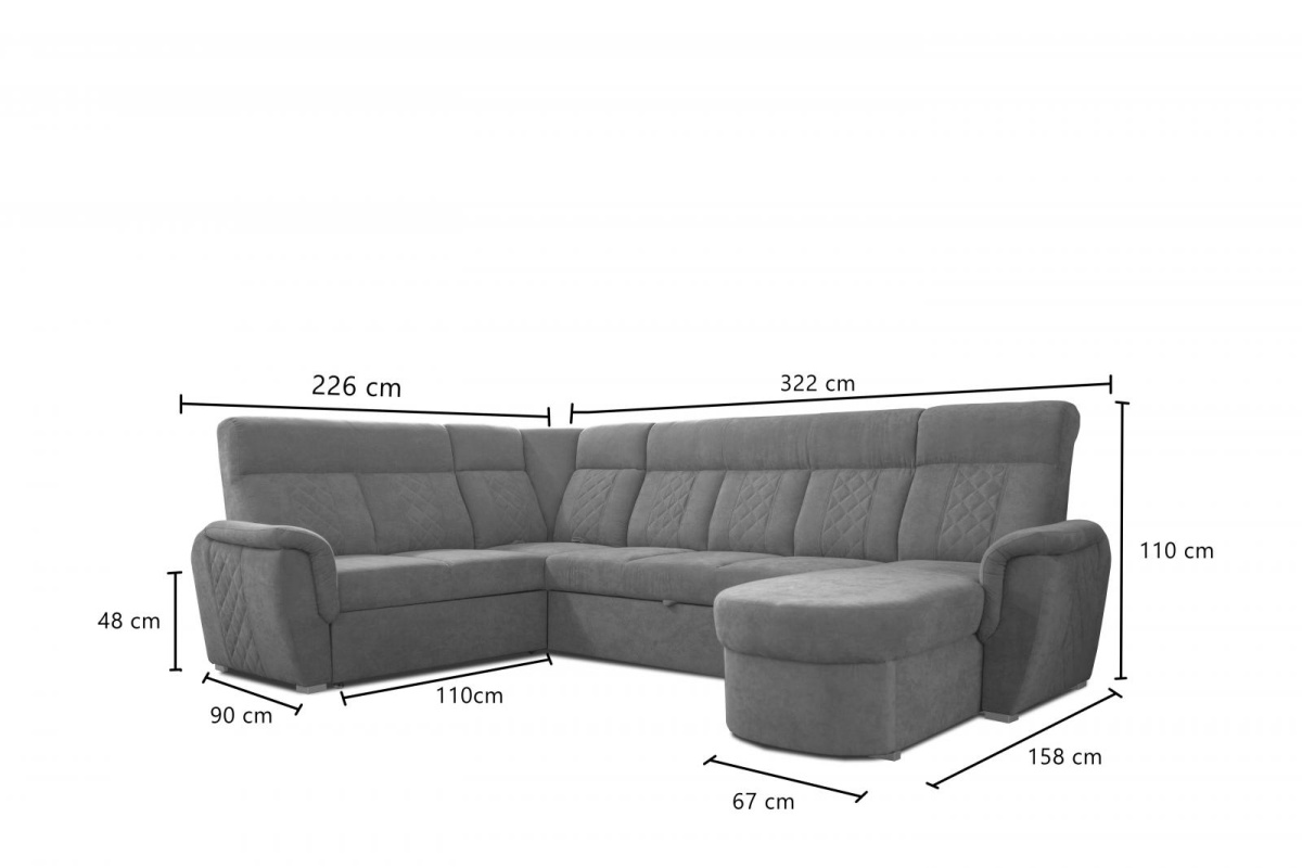 Sedací souprava Billy je prostorná a je velmi komfortní na posed. Má dostatečně vysoká záda, což zajišťuje jak oporu pro záda, tak i podporu při opření hlavy. Sedačka má navíc dvě polohovatelné zádové opěrky, díky kterým bude ležení ještě pohodlnější. Sedací souprava je rozkládací a jednoduchým rozkladem vznikne prostorné lůžko pro občasné přespání. Samozřejmostí je také úložný prostor. Velkou předností této sedací soupravy je univerzální možnost sestavení, tzn. že podle potřeby můžete mít levou nebo pravou stranu, což je velká výhoda při zařizování obývacího pokoje. Výplň sedáků tvoří kombinace vlnitých pružin a pružin bonel. Sedací souprava je potažena kvalitní látkou Soro, která je dostatečně odolná a pevná. Látka je měkká, prodyšná, snadno absorbuje vlhkost a také odolává dennímu světlu a netvoří žmolky. Tuto sedací soupravu nabízíme v několika variantách a v různých barevných odstínech. Vyobrazené doplňky a dekorace nejsou v ceně sedací soupravy. Zobrazení barev na fotografii se může od skutečnosti nepatrně lišit.