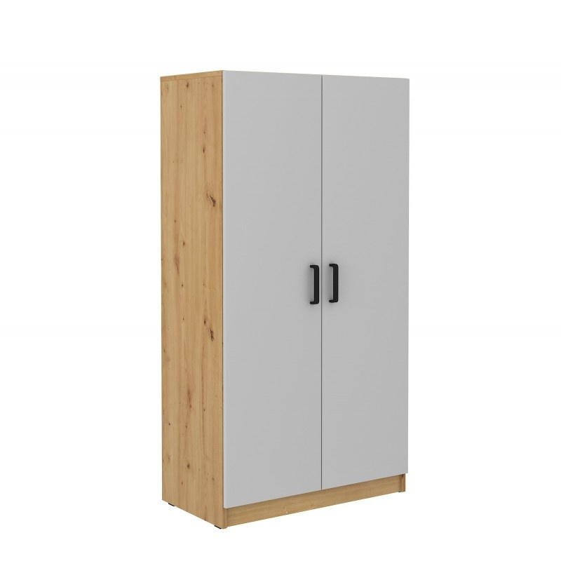 Dvoudveřová skříň s policemi Matylda 107 je vyrobena z lamina v provedení světle šedá a dub artisan. Skříň je velmi praktická a pojme vše potřebné. Je dodávána v demontu. Součástí balení je montážní návod včetně všech spojovacích prvků.