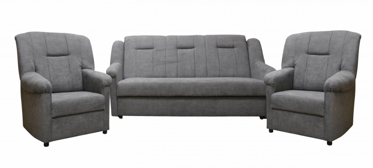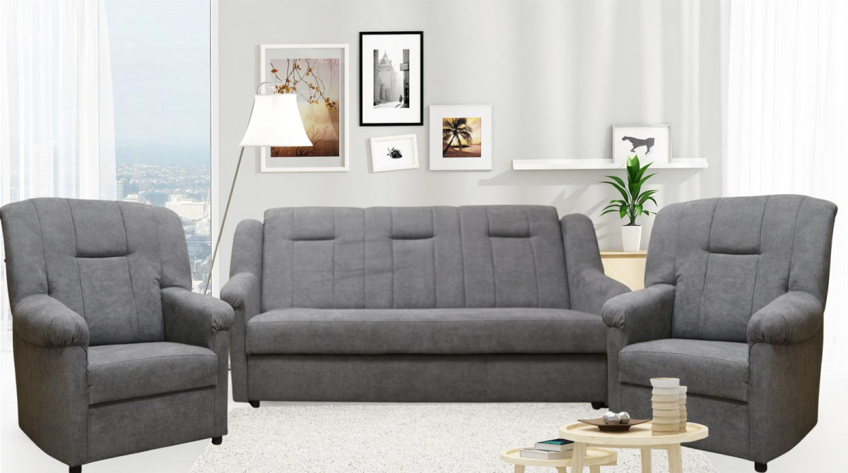 Klasická sedací souprava Panda, je díky svým rozměrům vhodná také do menších pokojů. Sedací souprava je rozkládací a samozřejmostí je i praktický úložný prostor. Jednoduchým rozložením pomocí systému "klik klak", vznikne lůžko vhodné k příležitostnému spaní. Sedací souprava je potažena kvalitní potahovou látkou. Sedací soupravu nabízíme v několika barevných provedeních, takže si určitě vyberet tu pravou pro Váš útulný obývací pokoj.