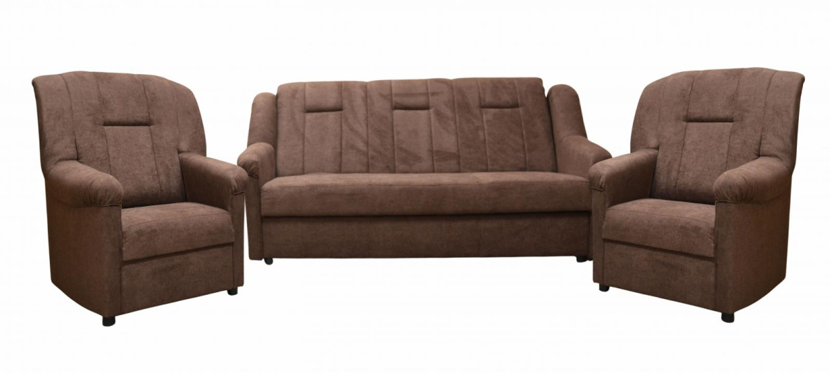 Klasická sedací souprava Panda, je díky svým rozměrům vhodná také do menších pokojů. Sedací souprava je rozkládací a samozřejmostí je i praktický úložný prostor. Jednoduchým rozložením pomocí systému "klik klak", vznikne lůžko vhodné k příležitostnému spaní. Sedací souprava je potažena kvalitní potahovou látkou. Sedací soupravu nabízíme v několika barevných provedeních, takže si určitě vyberet tu pravou pro Váš útulný obývací pokoj.
