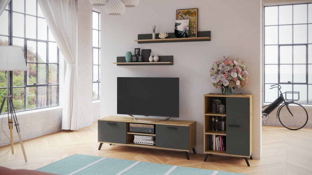 Police 100 cm Roky 4 Grafit je vyrobena z lamina v krásném dekoru grafit a dub artisan. Lamino tloušťky 18 mm je odolné a je zakončeno lištou ABS. Jistě oceníte i snadnou údržbu.