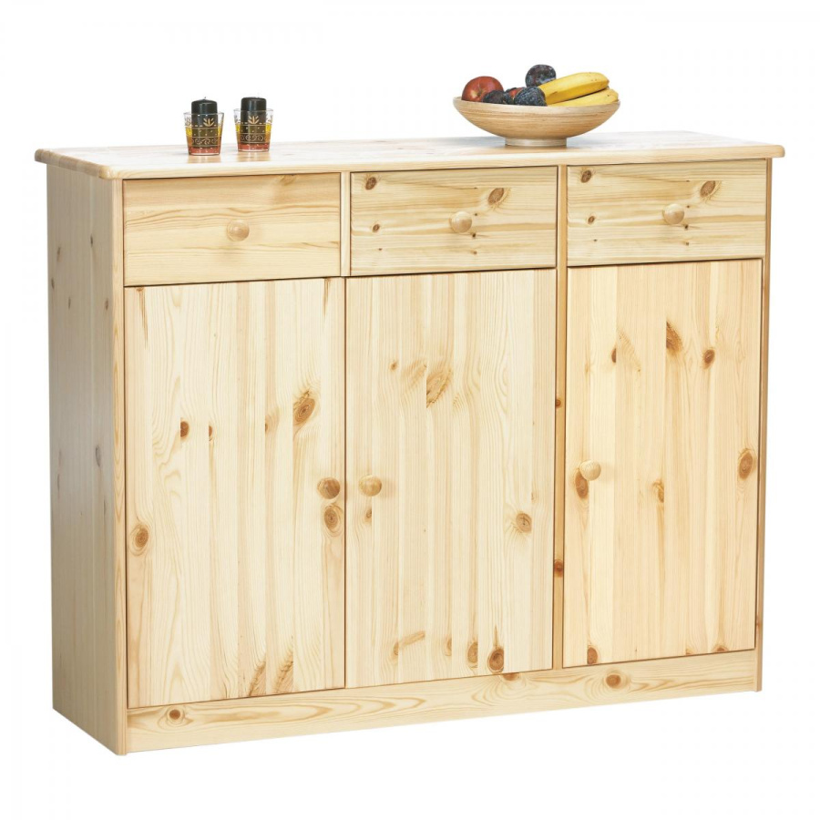 Nezkrotná klasika plná nostalgie. Nábytek série Mody z odolné masivní borovice má jednoduchý design zbavený všeho nadbytečného. Na druhou stranu je kladen důraz na funkčnost, což se odráží v pohodlných dřevěných úchytkách a zásuvkách, které se snadno zasouvají. Sortiment řady Mody se skládá z nočních stolků, komod, příborníků a botníků. Prostorná komoda má 3 zásuvky a 3 dvířka. Nabízíme ji také v další barevné variantě. Zboží je dodáváno v demontu se schematickým návodem na montáž. Vyobrazené doplňky a dekorace nejsou v ceně.