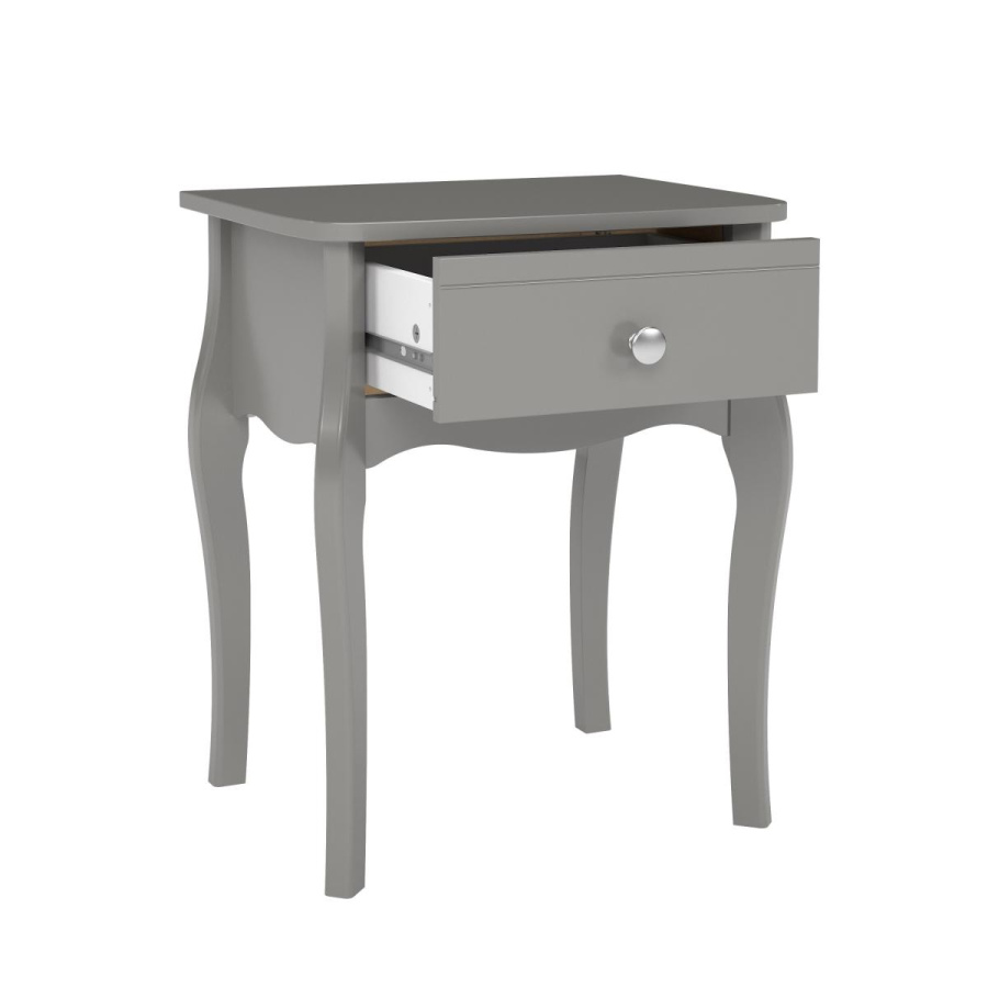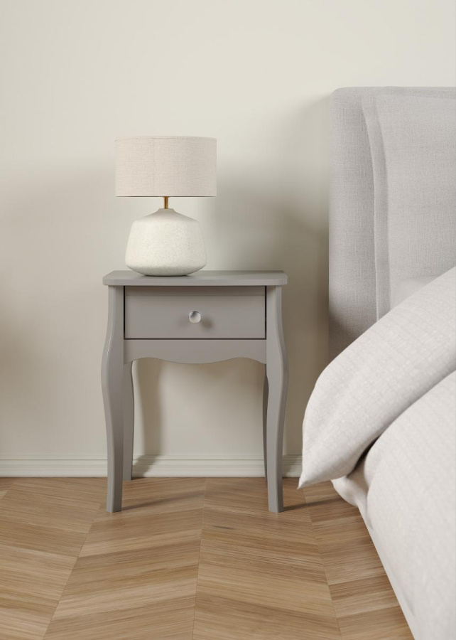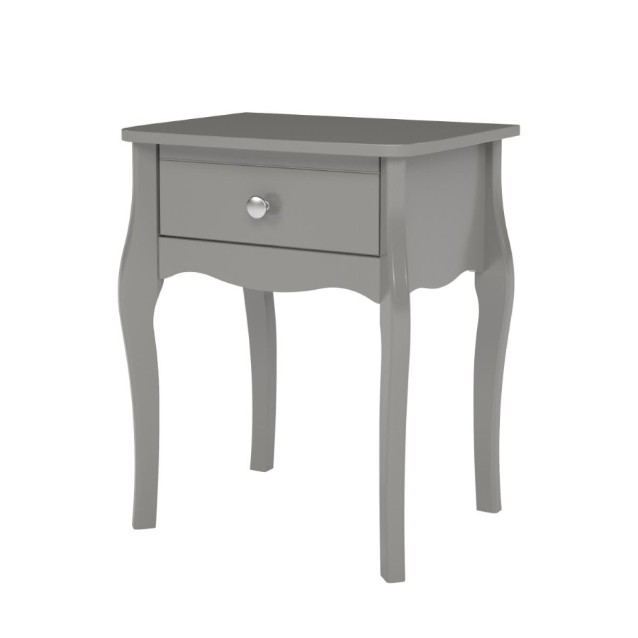 Půvabná série Baroneta dánského výrobce je charakteristická detailními ornamenty a harmonickými tvary s náznakem skandinávského minimalismu. Výrazným prvkem nábytku inspirovaným barokním stylem jsou zakřivené nohy, které přispívají ke stylovému a elegantnímu designu interiéru. Série vyrobená z kvalitních MDF desek obsahuje noční, toaletní stolky, komody a šatní skříně ve více barevných variantách. Zboží je dodáváno v demontu, součástí je schematický návod na montáž.