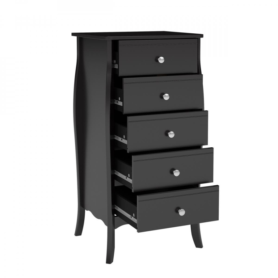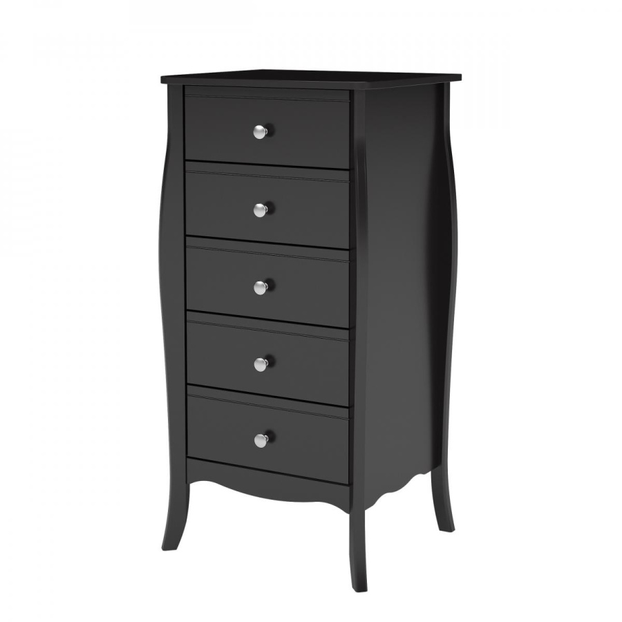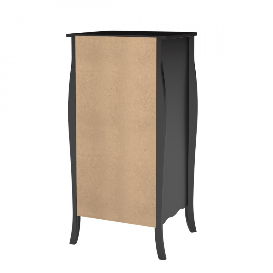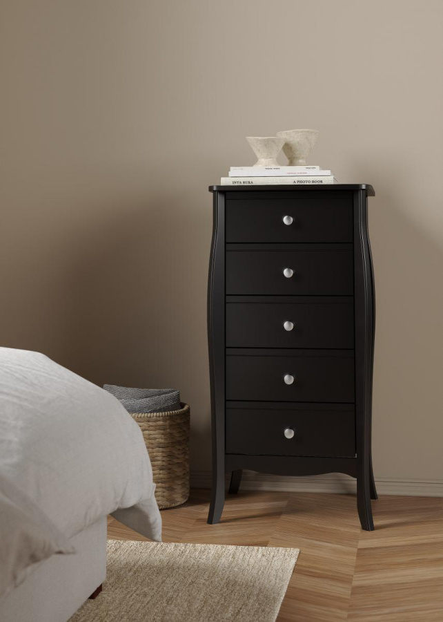 Půvabná série Baroneta dánského výrobce je charakteristická detailními ornamenty a harmonickými tvary s náznakem skandinávského minimalismu. Výrazným prvkem nábytku inspirovaným barokním stylem jsou zakřivené nohy, které přispívají ke stylovému a elegantnímu designu interiéru. Série vyrobená z kvalitních MDF desek obsahuje noční, toaletní stolky, komody a šatní skříně ve více barevných variantách. Zboží je dodáváno v demontu, součástí je schematický návod na montáž.