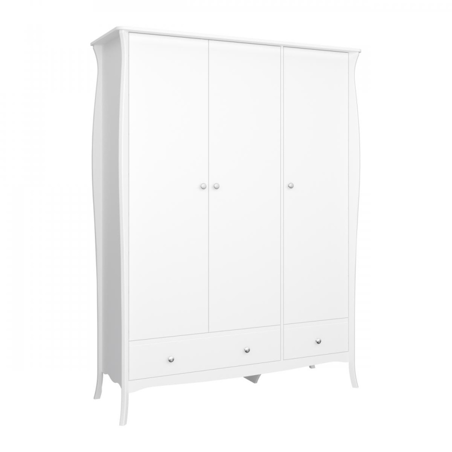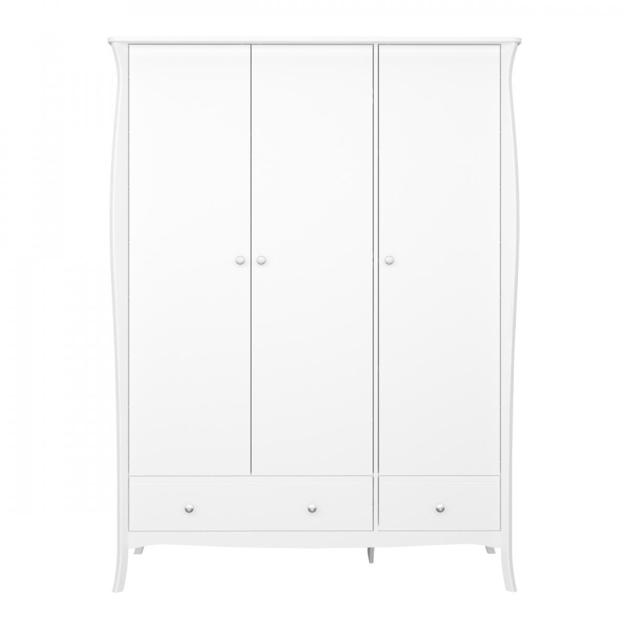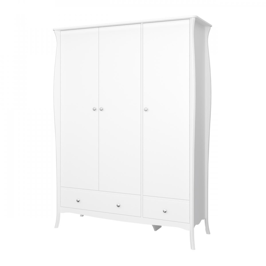 Půvabná série Baroneta dánského výrobce je charakteristická detailními ornamenty a harmonickými tvary s náznakem skandinávského minimalismu. Výrazným prvkem nábytku inspirovaným barokním stylem jsou zakřivené nohy, které přispívají ke stylovému a elegantnímu designu interiéru. Série vyrobená z kvalitních MDF desek obsahuje noční, toaletní stolky, komody a šatní skříně ve více barevných variantách. Tato prostorná šatní skříň je vybavena 2 zásuvkami, policemi a šatní tyčí. Zboží je dodáváno v demontu, součástí je schematický návod na montáž.