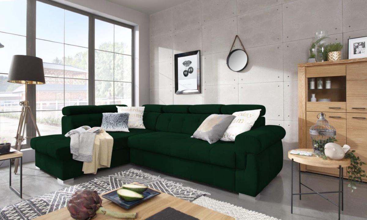 Pohodlná sedací souprava patří k nejdůležitějšímu vybavení každého obývacího pokoje. Je centrem k odpočinku po namáhavém dni, nebo k posezení s rodinou či přáteli a proto musí být pohodlná a praktická. Nabízíme Vám sedací soupravu Amadeus, která je ideálním spojením pohodlí, praktičnosti a také moderního designu. Tato sedací souprava přímo vybízí k relaxaci např. u sledování televize. Pohodlí při sezení zajišťuje výplň sedáku, kterou tvoří vlnité pružiny v kombinaci s kvalitní HR pěnou a také polohovací opěrky, které si můžete podle potřeby přizpůsobit. Praktickou stránkou je možnost rozkládání. Po rozložení vznikne dostatečně velké lůžko k občasnému přespání návštěvy. Samozřejmostí je i objemný úložný prostor, který můžete využít třeba na lůžkoviny. Sedací soupravu nabízíme v levém i pravém provedení. Vyobrazené doplňky a dekorace nejsou v ceně sedací soupravy.