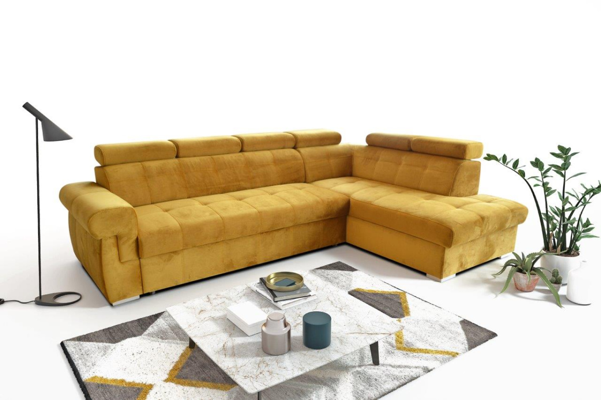 Pohodlná sedací souprava patří k nejdůležitějšímu vybavení každého obývacího pokoje. Je centrem k odpočinku po namáhavém dni, nebo k posezení s rodinou či přáteli a proto musí být pohodlná a praktická. Nabízíme Vám sedací soupravu Amadeus, která je ideálním spojením pohodlí, praktičnosti a také moderního designu. Tato sedací souprava přímo vybízí k relaxaci např. u sledování televize. Pohodlí při sezení zajišťuje výplň sedáku, kterou tvoří vlnité pružiny v kombinaci s kvalitní HR pěnou a také polohovací opěrky, které si můžete podle potřeby přizpůsobit. Praktickou stránkou je možnost rozkládání. Po rozložení vznikne dostatečně velké lůžko k občasnému přespání návštěvy. Samozřejmostí je i objemný úložný prostor, který můžete využít třeba na lůžkoviny. Sedací soupravu nabízíme v levém i pravém provedení. Vyobrazené doplňky a dekorace nejsou v ceně sedací soupravy.