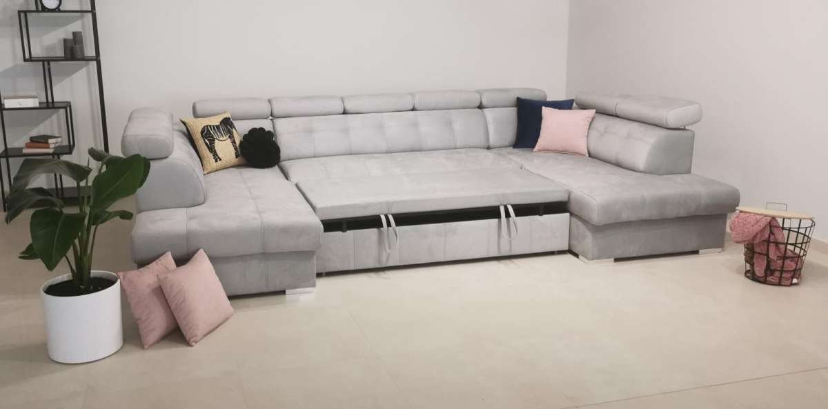 Pohodlná sedací souprava patří k nejdůležitějšímu vybavení každého obývacího pokoje. Je centrem k odpočinku po namáhavém dni, nebo k posezení s rodinou či přáteli a proto musí být pohodlná a praktická. Nabízíme Vám prostornou sedací soupravu Amadeus ve tvaru U, která je ideálním spojením pohodlí, praktičnosti a také moderního designu. Tato sedací souprava přímo vybízí k relaxaci např. u sledování televize. Pohodlí při sezení zajišťuje výplň sedáku, kterou tvoří vlnité pružiny v kombinaci s kvalitní HR pěnou a také polohovací opěrky, které si můžete podle potřeby přizpůsobit. Praktickou stránkou je možnost rozkládání. Po rozložení vznikne dostatečně velké lůžko k občasnému přespání návštěvy. Samozřejmostí je i objemný úložný prostor, který můžete využít třeba na lůžkoviny. Vyobrazené doplňky a dekorace nejsou v ceně sedací soupravy.