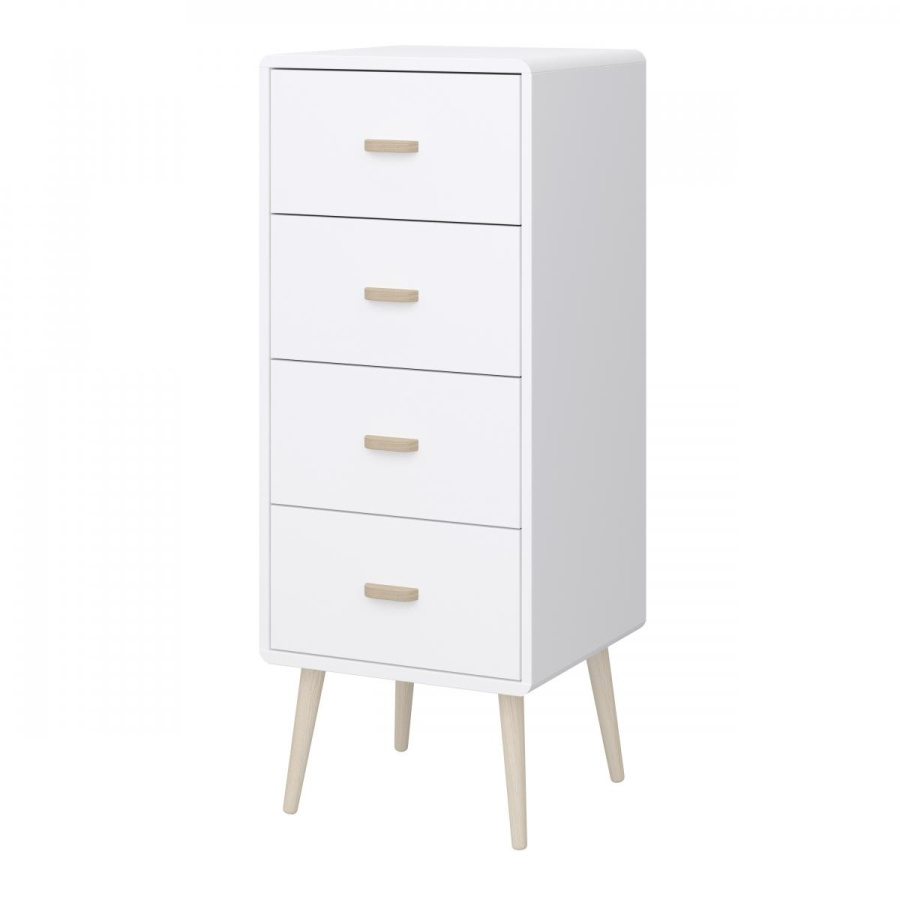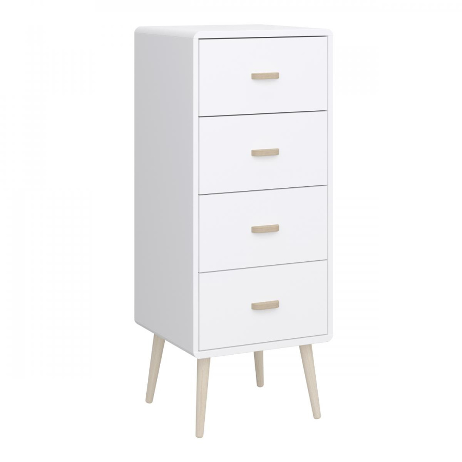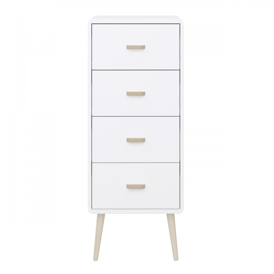 Série Miva dánského výrobce je moderní a stylová řada jasně inspirovaná severským minimalismem. Nábytek vyjadřuje jemnost, styl a klasickou eleganci díky širokým dubovým úchytkám a kulatým nožkám ze stejného materiálu. Sortiment této řady vyrobené z odolného MDF dřeva tvoří komody, noční stolky, botník a také stůl ve stejně vkusném designu. Zboží je dodáváno v demontu, součástí je schematický návod na montáž.