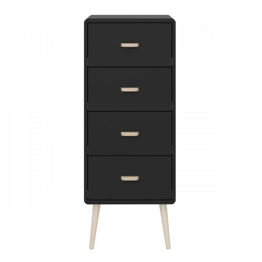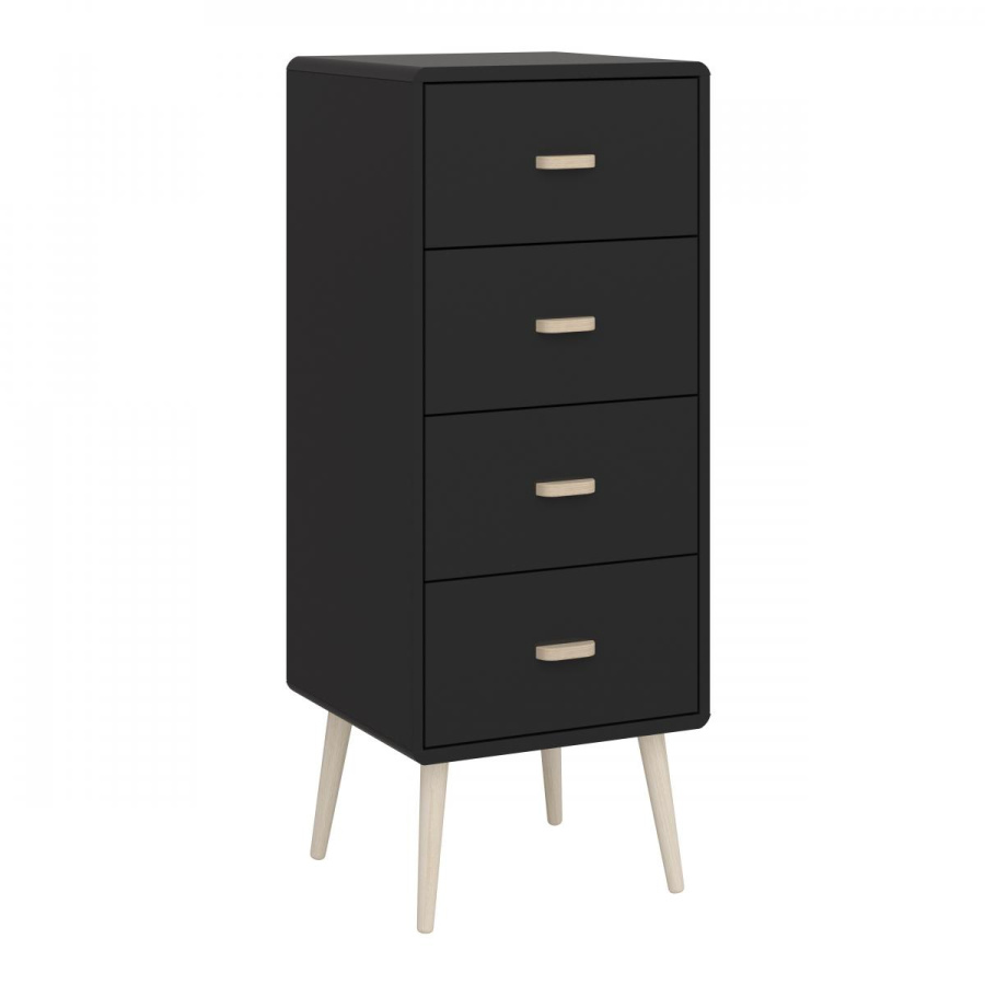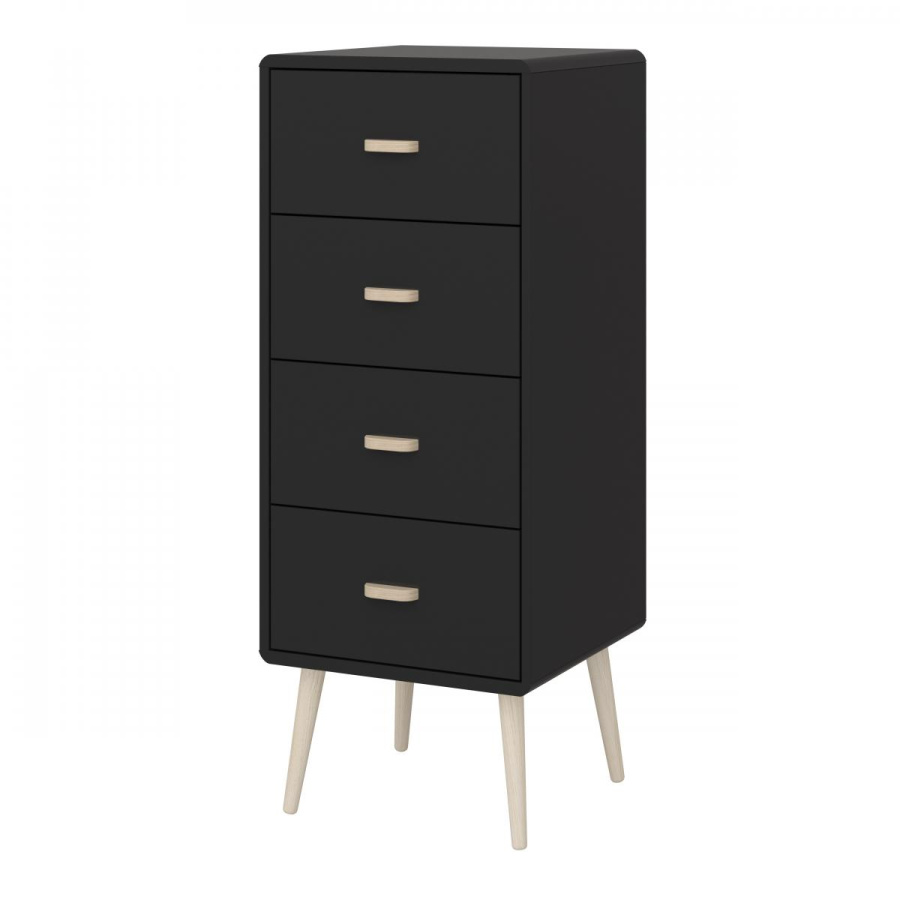 Série Miva dánského výrobce je moderní a stylová řada jasně inspirovaná severským minimalismem. Nábytek vyjadřuje jemnost, styl a klasickou eleganci díky širokým dubovým úchytkám a kulatým nožkám ze stejného materiálu. Sortiment této řady vyrobené z odolného MDF dřeva tvoří komody, noční stolky, botník a také stůl ve stejně vkusném designu. Zboží je dodáváno v demontu, součástí je schematický návod na montáž.