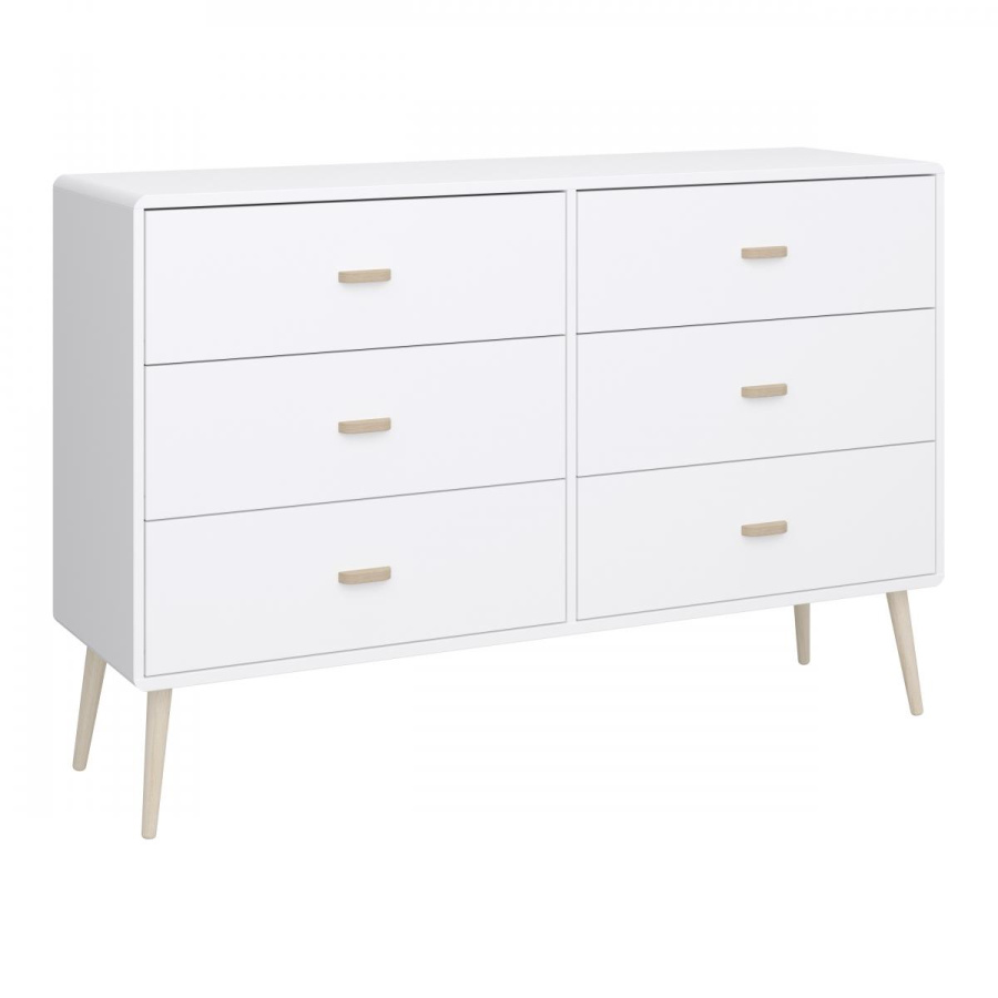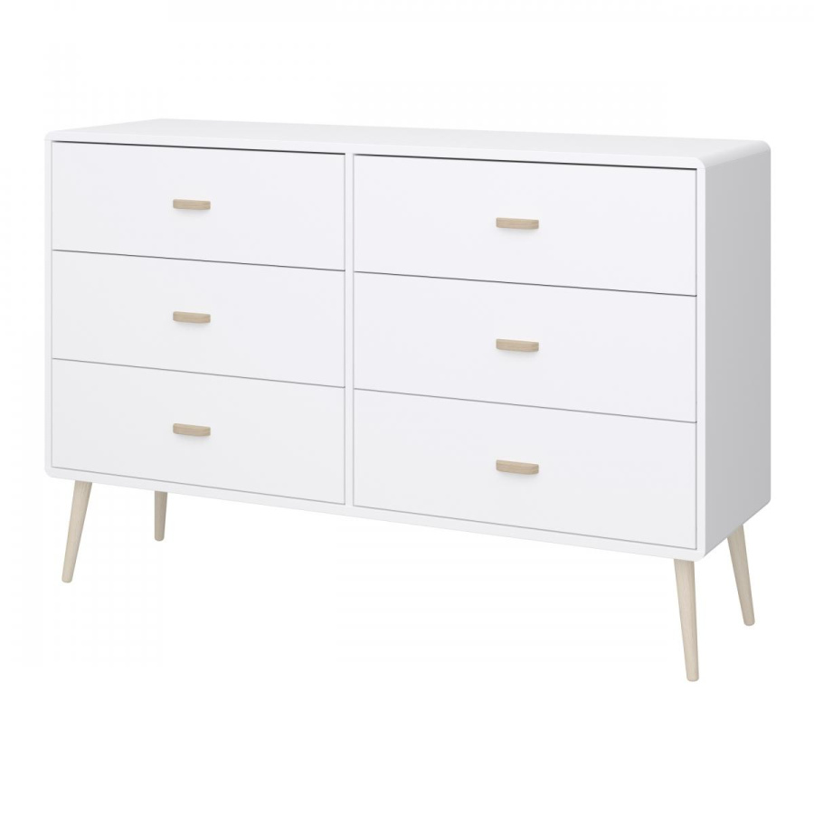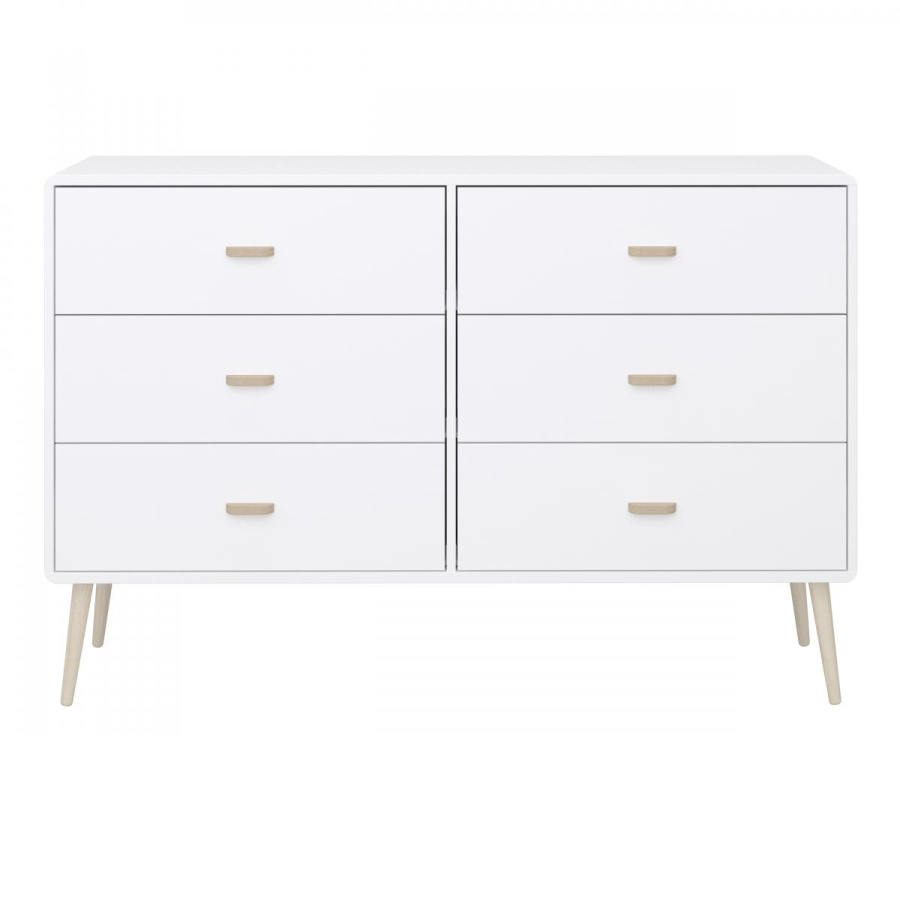 Série Miva dánského výrobce je moderní a stylová řada jasně inspirovaná severským minimalismem. Nábytek vyjadřuje jemnost, styl a klasickou eleganci díky širokým dubovým úchytkám a kulatým nožkám ze stejného materiálu. Sortiment této řady vyrobené z odolného MDF dřeva tvoří komody, noční stolky, botník a také stůl ve stejně vkusném designu. Zboží je dodáváno v demontu, součástí je schematický návod na montáž.