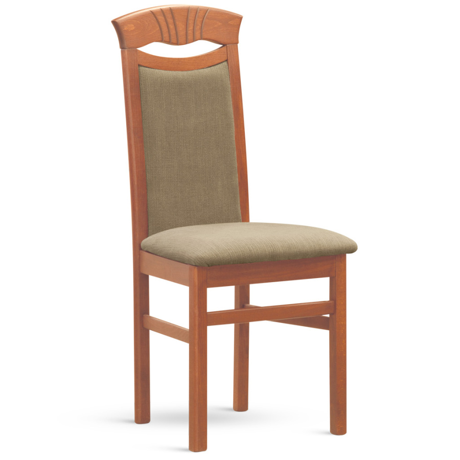 Jídelní židle, čalouněný sedák i opěrák. Kostra buk masiv, mořeno.