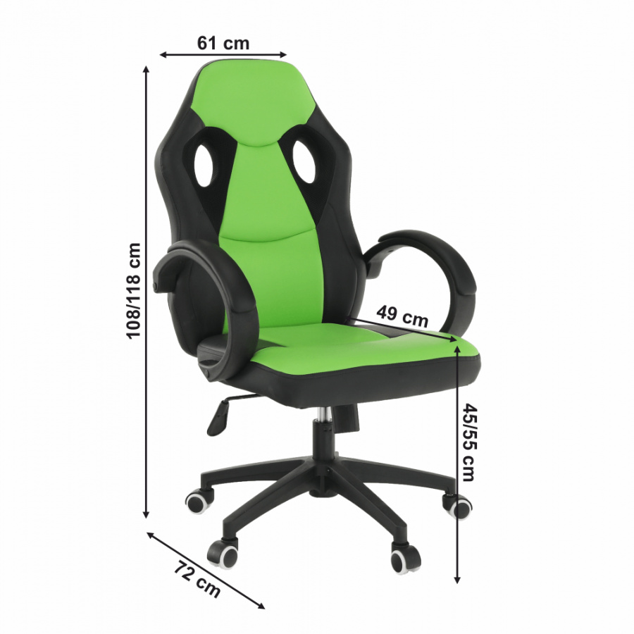 Kancelářské křeslo LESTER NEW Materiál: ekokůže / plast Barva: černá / zelená Rozměry (ŠxHxV): 61x72x108-118 cm Výška sedu: 45-44 cm Hloubka sedu: 49 cm Nosnost: 130 kg. Dodávané v demontu.