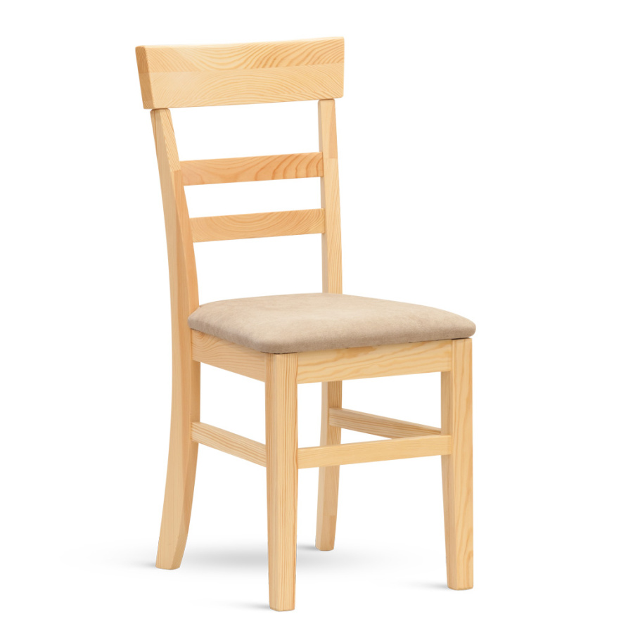 Jídelní židle s čalouněným sedákem. Materiál je borovice masiv.