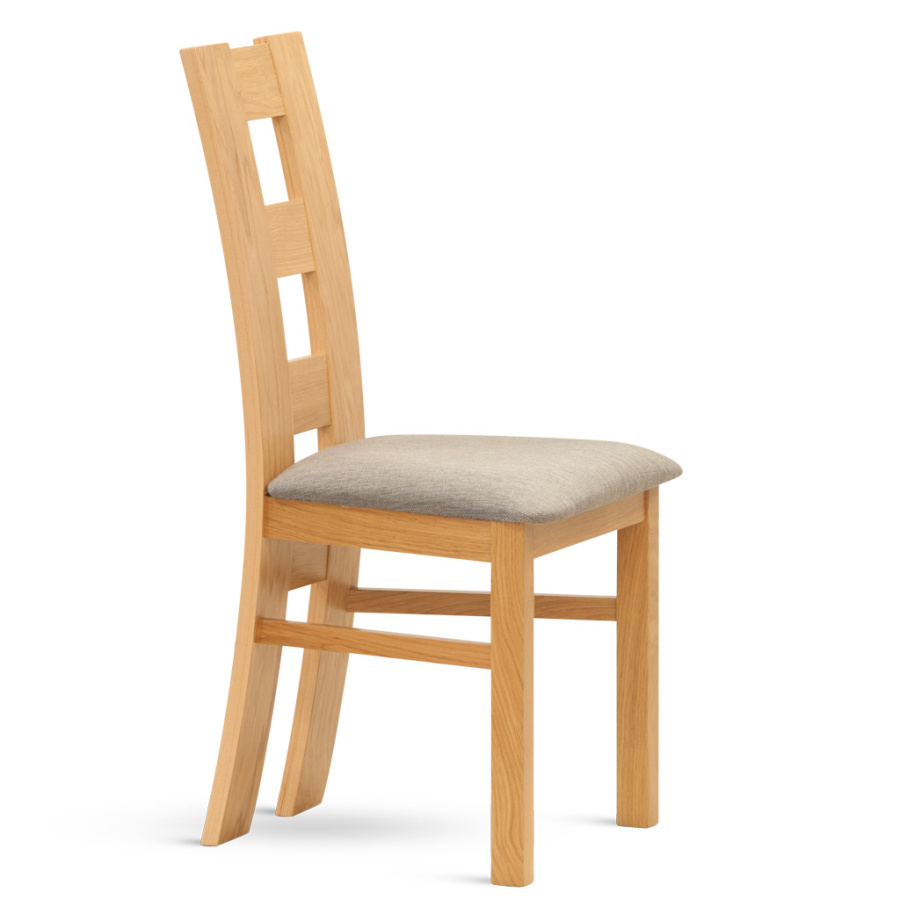 Dřevěná jídelní židle s čalouněným sedákem. Materiál masiv dub.