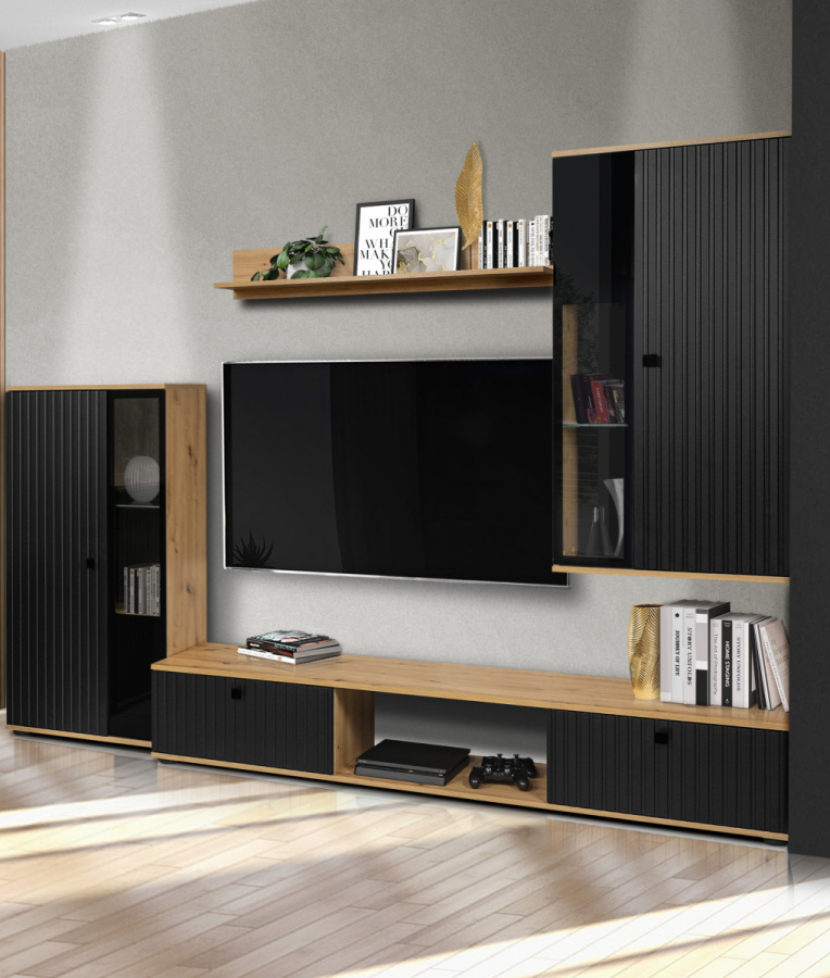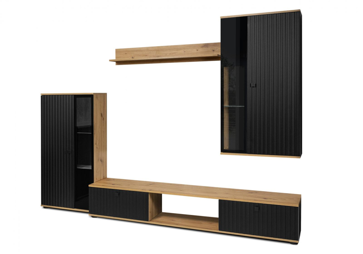 Obývací stěna Silos/černá/dub artisan/melamina
