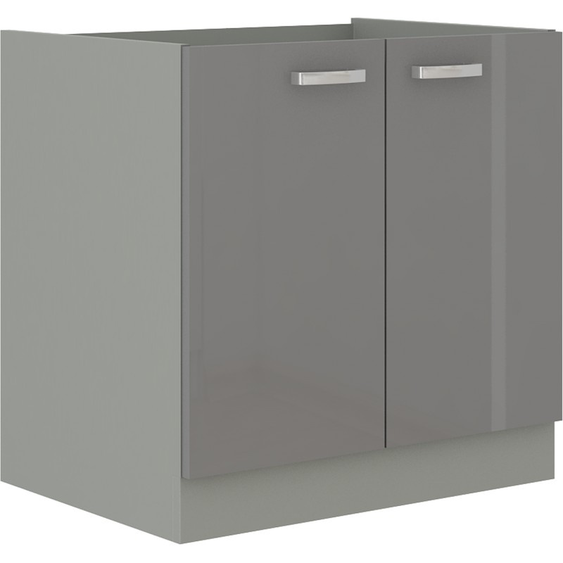 Spodní dvoudvéřová kuchyňská skříňka je vyrobena z lamina tloušťky 16 mm šedé lesklé barvy. Korpus skříňky je v šedém provedení. Vnitřek skříňky je tvořen jednou širokou praktickou policí. Dvířka mají kovové úchytky (délka 135mm). Dále jsou dvířka vybavena systémem tichého zavírání. Skříňka je vyrobena z kvalitních MDF desek. Poskládejte si z naší bohaté nabídky skříněk moderní a designovou kuchyň podle Vašich představ. Skříňka je dodávaná v demontu. Součástí je montážní plánek včetně všech potřebných spojovacích materiálů.