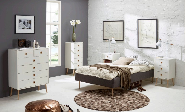 Elegantní řada Soter je ztělesněním jemných linií. Design nábytku vyrobeného z odolných MDF desek se vyznačuje zaoblenými hranami, kulatými úchytkami a nohami z masivního dubu. Sortiment této série dánského výrobce nabízí noční stolky, komody různých velikostí a tvarů, šatní skříň, botník, toaletní stolek a konzolový stolek. Zboží je dodáváno v demontu, součástí je schematický návod na montáž.